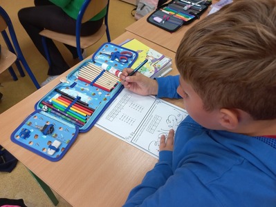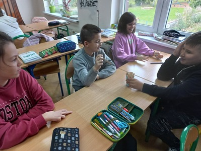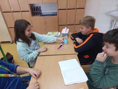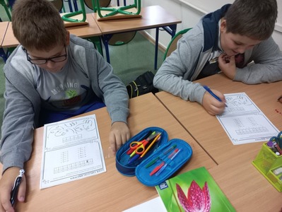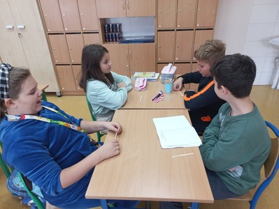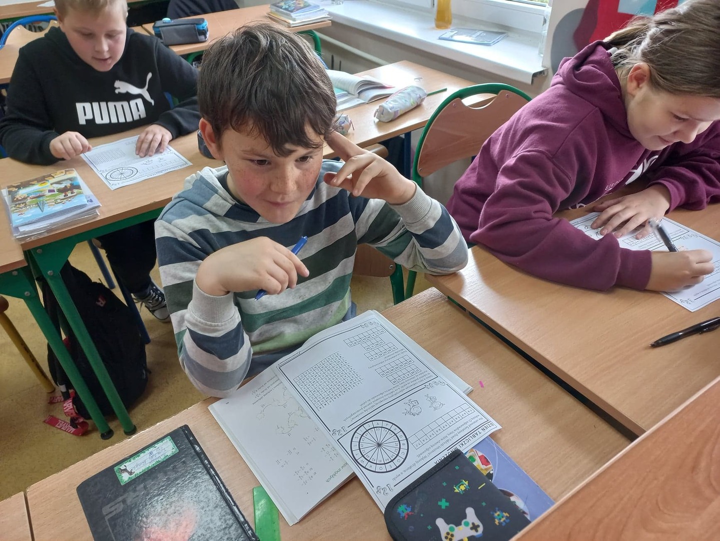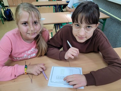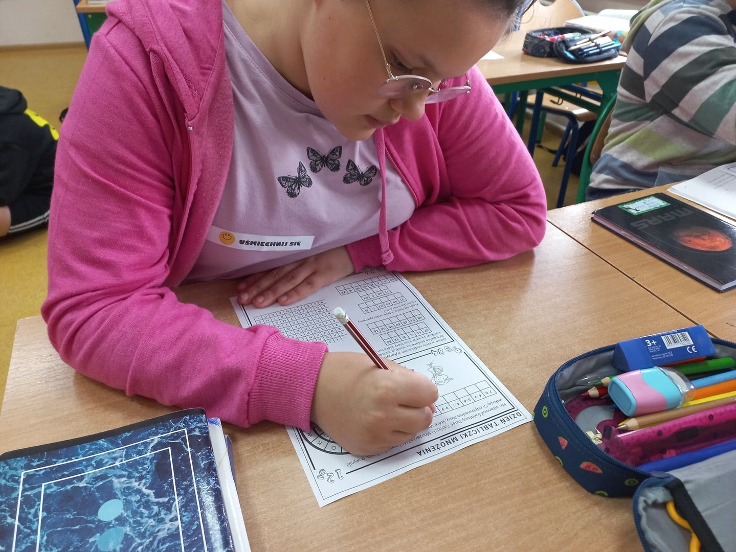 Kochani młodsi uczniowie i przedszkolacy! Wszystko przed Wami, nie ma co się bać. Żeby policzyć ile ciastek na talerzu wystarczą paluszki. Jeżeli jednak nasi pierwszoklasiści niebawem staną się prawowitymi uczniami, tobędą już na wyższym etapie liczenia. Szybko się zorientują, że palców zabraknie i co wtedy? Starsi uczniowie albo są na etapie przyswajania tabliczki mnożenia, albo już ją doskonale opanowali. Podobno, jak się ktoś już jej nauczy, to umie ją przez całe życie. Jednym ze sposobów opanowywania tabliczki mnożenia jest nauka poprzez zabawę. I dlatego nasi uczniowie dzisiaj się świetnie bawili z tabliczką mnożenia, co widać na załączonych zdjęciach. Zabawa zabawą, ale dobrze znać niektóre sztuczki, jakie kryje tabliczka mnożenia. Ich znajomość ułatwi nam obliczenia. I oto parę ciekawostek: