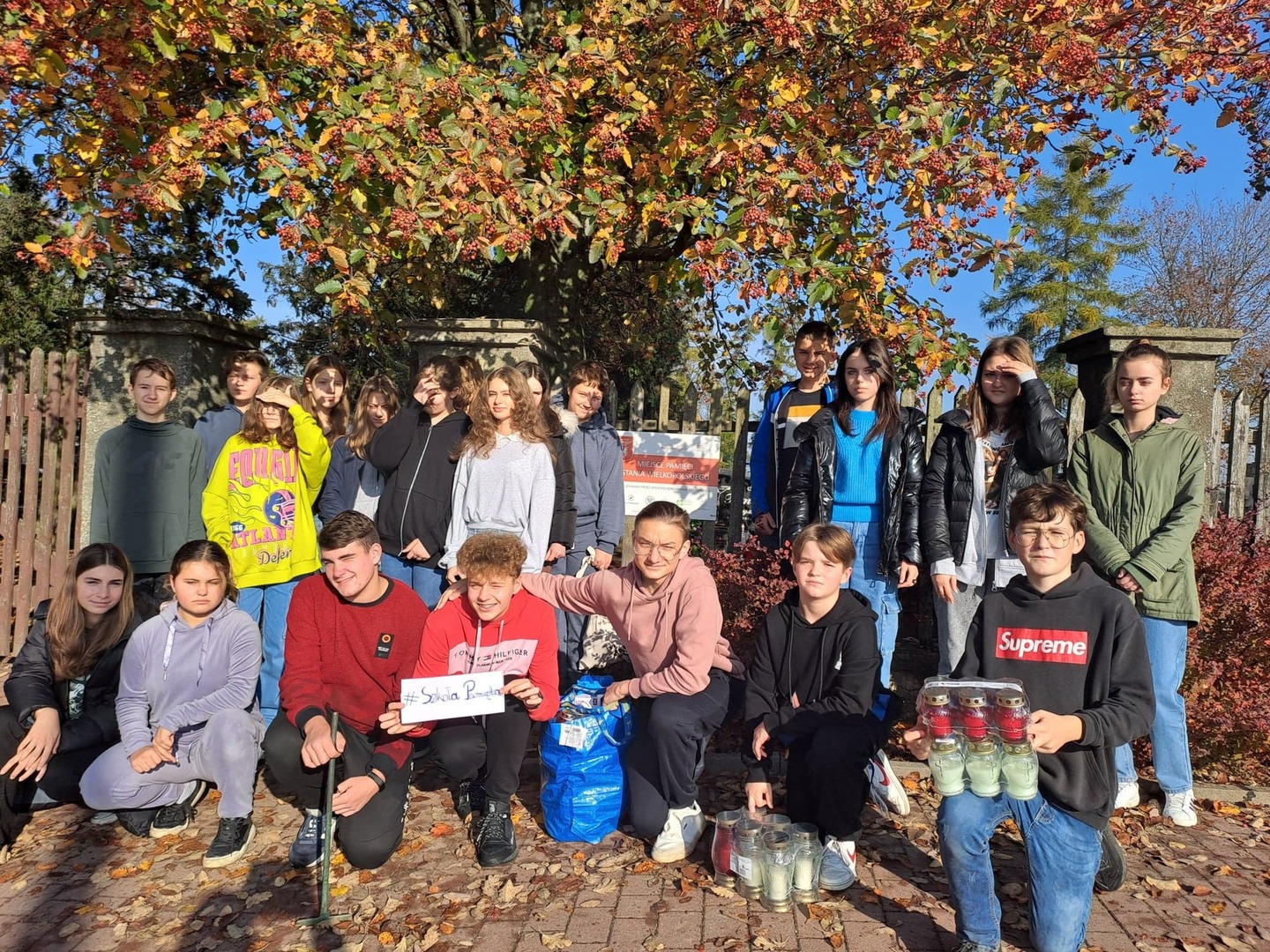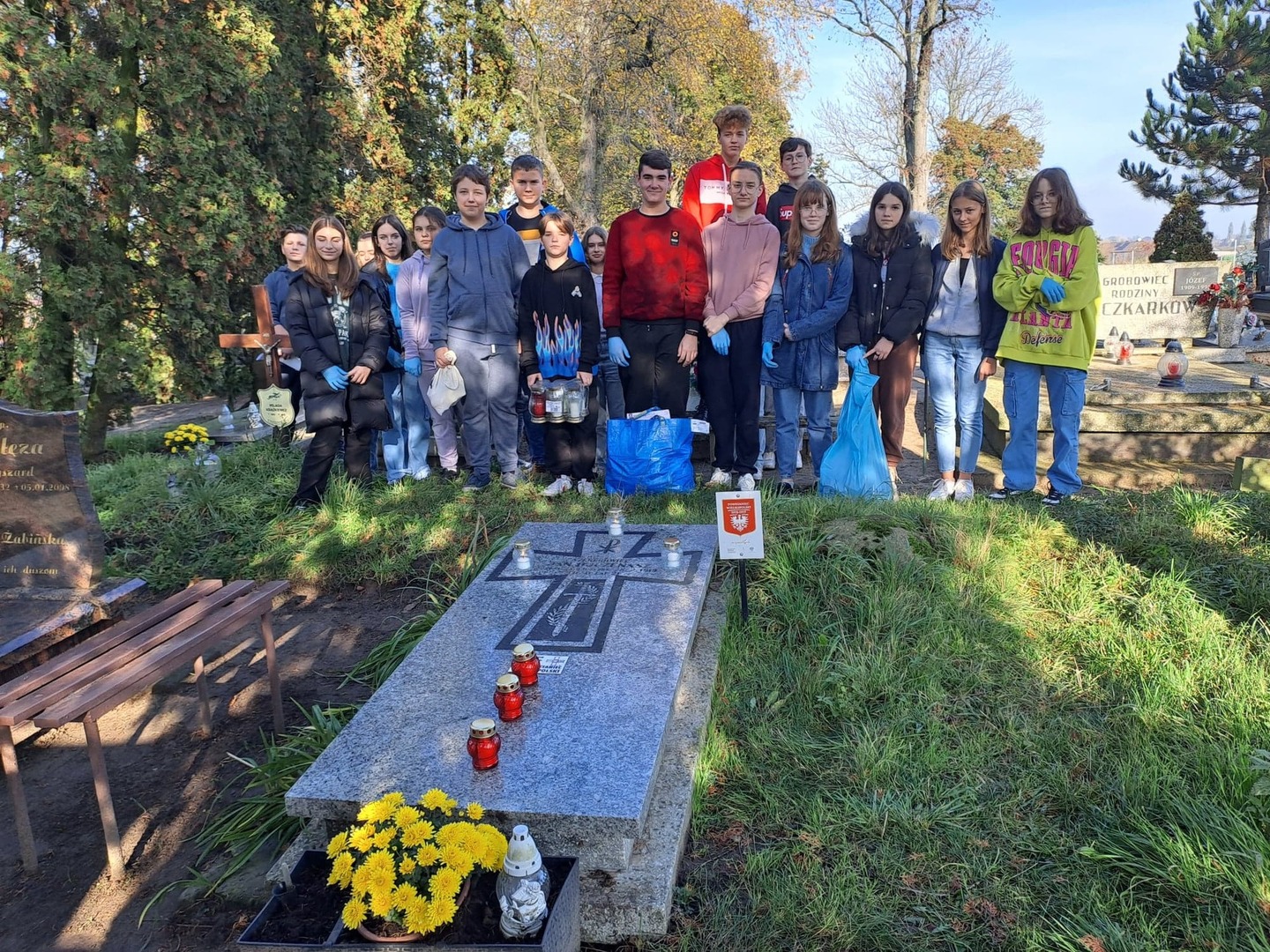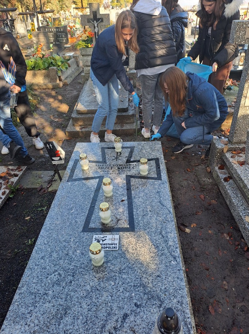 Uczniowie w przed dzień Wszystkich Świętych uporządkowali i zapalili zebrane znicze na grobach Powstańców Wielkopolskich na cmentarzu parafialnym w Kościelcu. W ten sposób przyczynili się do pielęgnowania pamięci o bohaterów naszej wolności związanych z historiąnaszego kraju, regionu i społeczności lokalnej.