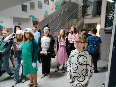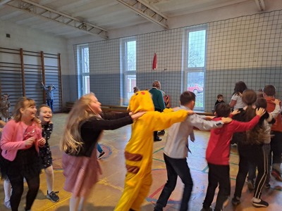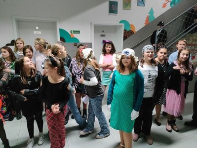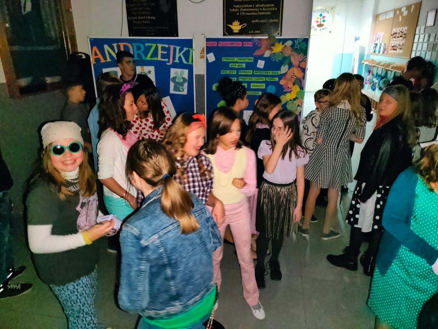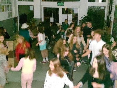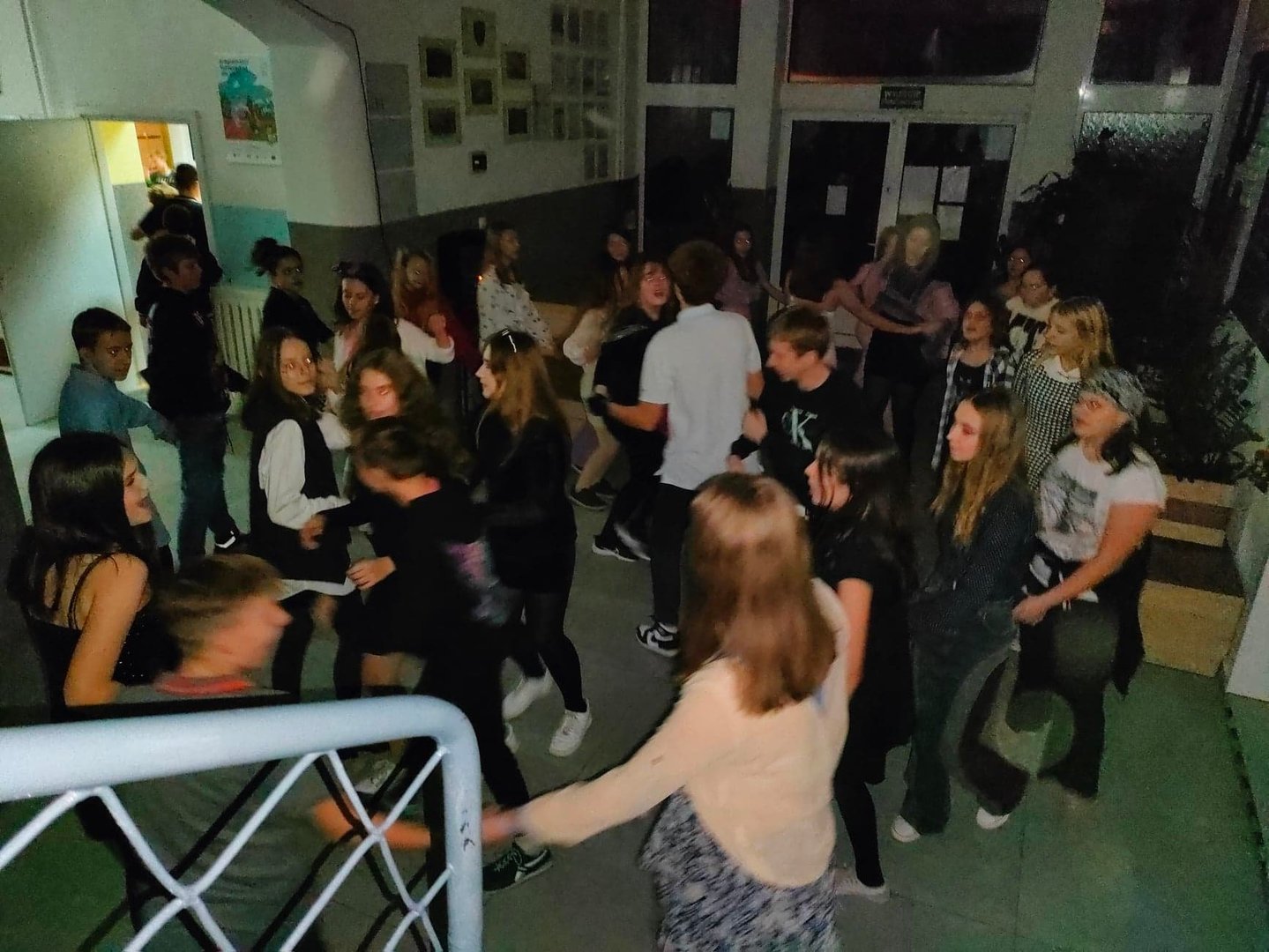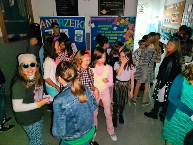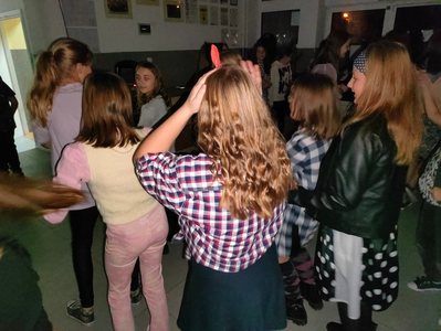 Tak było na pierwszej od lat uczniowskiej dyskotece z okazji andrzejek. Lata pandemii przerwały praktykowanie tej dziedziny sztuki jaką jest taniec. Ledwo zabrzmiała muzyka zgromadzeni uczniowie bez specjalnych zachęt zaczęli wykonywać rytmiczne ruchy ciała, a w szczególności rąk i nóg. Z precyzyjnym wręcz wyliczeniem wiły się ręce nad głowami tańczących ale żadna zbłąkana ręka nie wylądowała na cudzej głowie, żadna noga nie sięgnęła cudzego kolana, ani tym bardziej wyżej. Sala taneczna mieniła się kolorami świateł odbitych od świecących się strojów i ozdób. Uczniowie stanęli na wysokości zadania i mając na uwadze oszczędności, wytężali wzrok ( znaczy świecili oczami), bo przeważnie było ciemno. Na parkiecie królowały mniejsze lub większe koła, ale można było też dostrzec jakieś paso doble, w którym tancerze niczym toreadorzy na arenie walczyli z tancerkami pełniącymi rolę byka i mulety. Może i taniec odbiegał trochę od normy, bo jak się tak dobrze przyjrzeć, to tancerka pełniła rolę mulety, ale bykiem był drugi tancerz, który spod byka patrzył na tego pierwszego. Na uwagę zasługuje również fakt pojawienia się na zabawie Charliego Chaplina, który przechadzał się swoim charakterystycznym krokiem, podkręcał wąsik i wymachiwał laską. Dziwnym trafem laska znalazła się później w dwóch częściach. Ciekawe na czyich plecach…