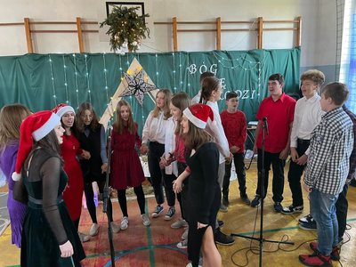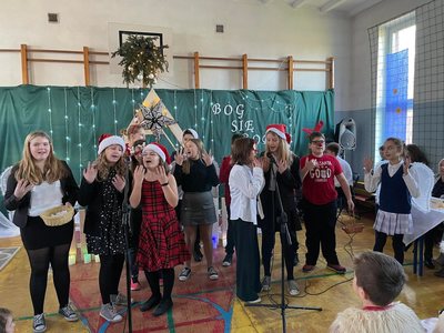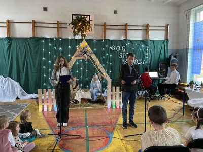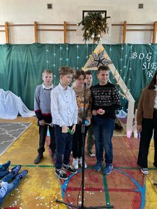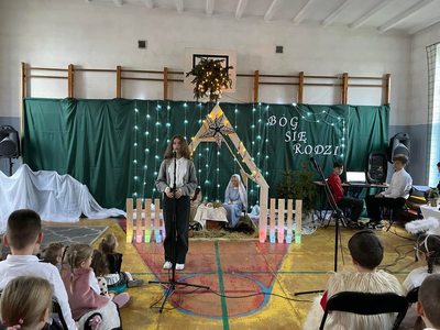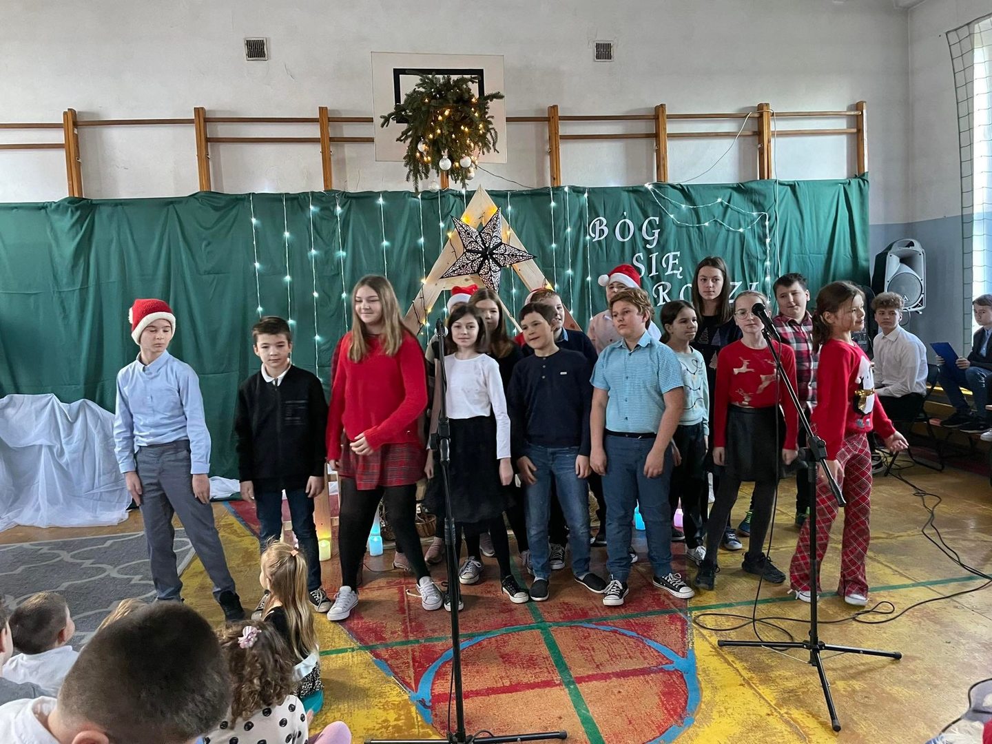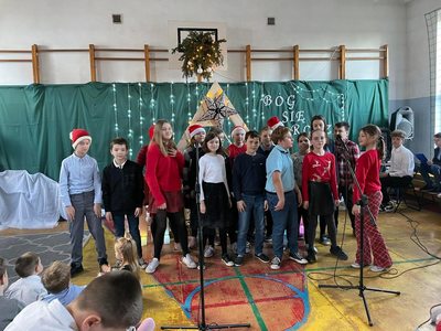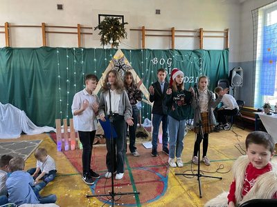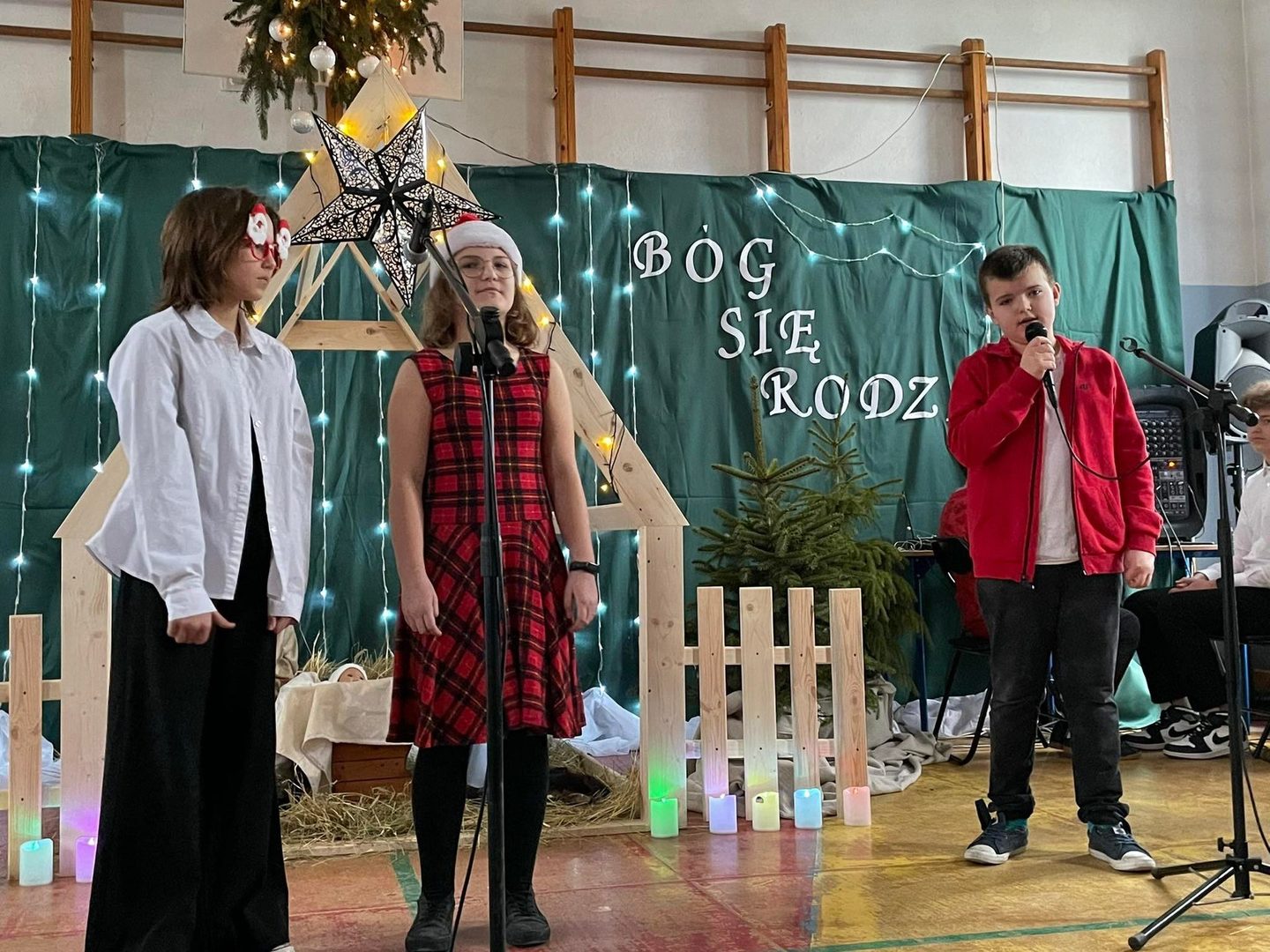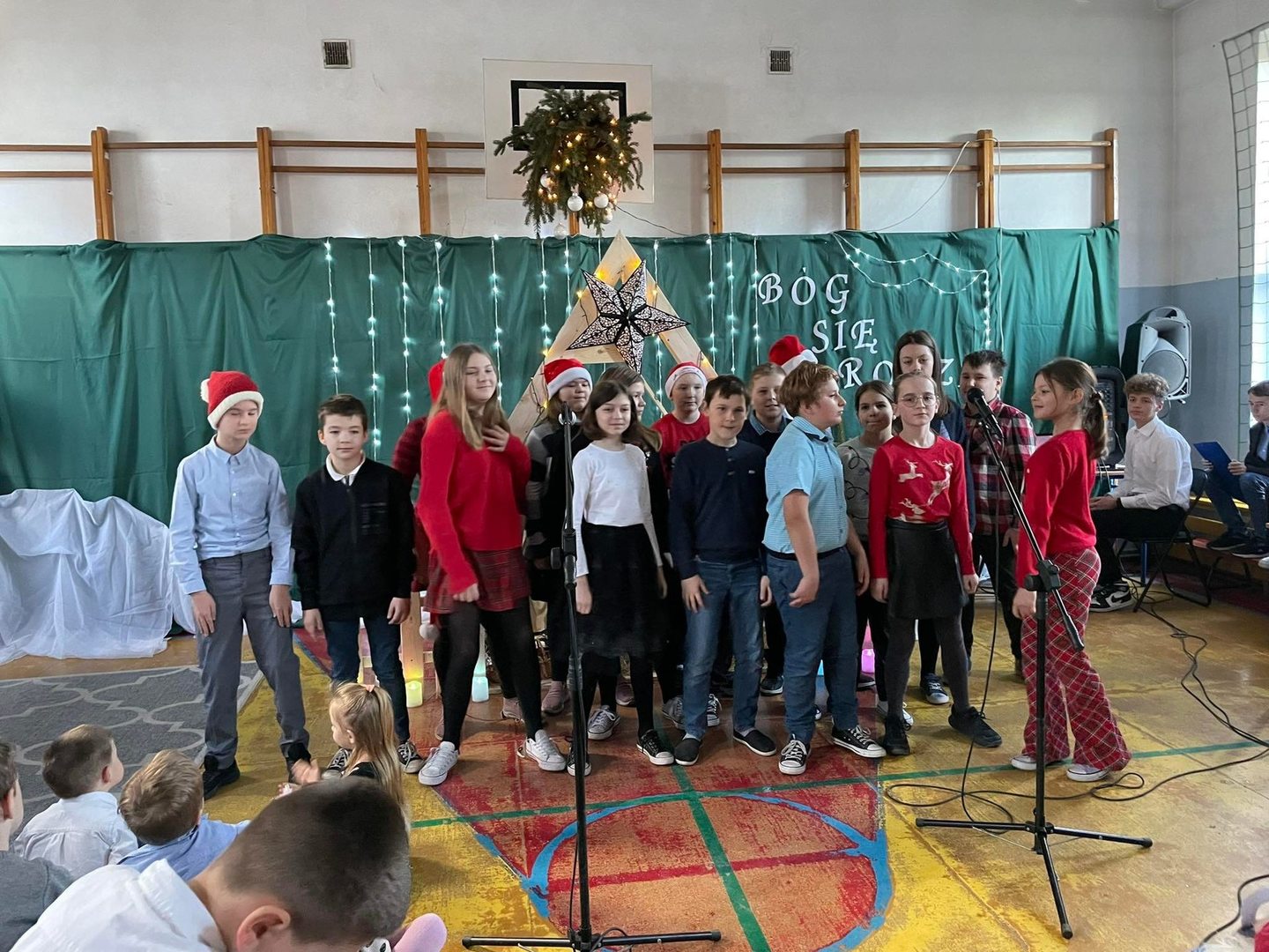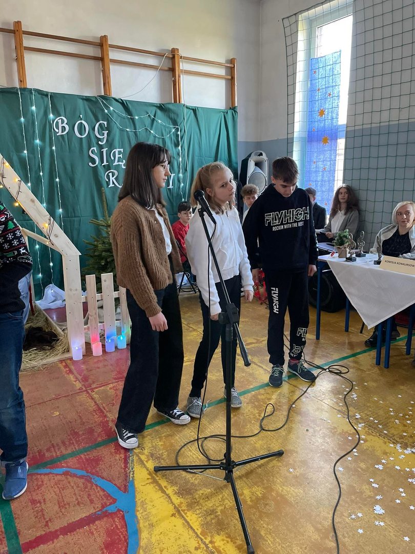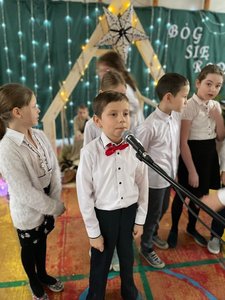 Kolędy, pastorałki i piosenki o tematyce świątecznej słyszymy niemal wszędzie. Przywołują na myśl piękny świąteczny czas. I chociaż święta już minęły, to jednak nadal trwa okres Bożego Narodzenia, a kolędy śpiewamy aż do 2 lutego. 5 stycznia w naszej szkole odbył się I Przegląd Kolęd i Pastorałek. Każda klasa zaprezentowała przygotowaną przez siebie kolędę, pastorałkę lub piosenkę o tematyce świątecznej. Prezentację poszczególnych klasoceniała komisja w składzie: Pani Dyrektor Dorota Tulibacka, Pani Katarzyna Cieślińska oraz Pani Katarzyna Hensel. Jako pierwsi zaprezentowali się najmłodsi – przedszkolacy wykonując kolędę „Do szopy hej pasterze”. Część konkursową w kategorii klas I-III rozpoczęła klasa I. Usłyszeliśmy w ich wykonaniu pastorałkę „Był pastuszek bosy”. Następnie uczniowie klasy II zaprezentowali kolędę „Małe Betlejem”. Drugą część konkursową rozpoczęli uczniowie z klasy IV pastorałką „Gore gwiazda Jezusowi”. Uczniowie klasy V wykonali piosenkę „Pada śnieg”. Klasa VI wykonała dla nas kolędę „Przybieżeli do Betlejem”. „Jest taki dzień” to utwór, który przygotowała klasa VII. Nasz konkurs zakończył się prezentacją klasy VIII kolędy „Dzisiaj w Betlejem”. Przed ogłoszeniem wyników wysłuchaliśmy kolędy „Uciekali” z musicalu Metro w wykonaniu Laury oraz piosenkę „Święta to czas niespodzianek” w wykonaniu uczennic z klasy V.