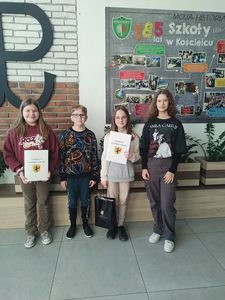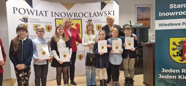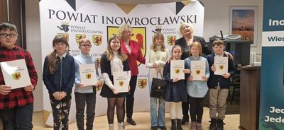 Gabriela Pannert, Kalina Tomaszewska, Paweł Kalczyński i Laura Woźniak - pod kierunkiem pani Agnieszki Bassy, przygotowali wspaniałe prace, które przedstawiały kulturowe i turystyczne atrakcje Powiatu Inowrocławskiego.