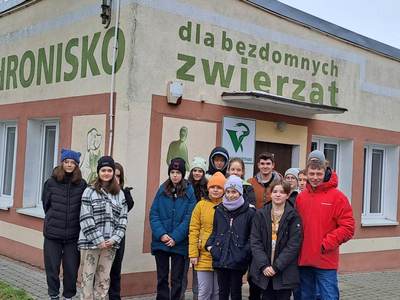 Uczniowie ze Szkolnego Koła Wolontariatu udali się z wizytą do inowrocławskiego schroniska dla zwierząt. Uczniowie przekazali karmę zebraną w szkole w ramach akcji „Święty Mikołaj dla zwierząt”, i „1 puszka dla kota 1 puszka dla psa”.