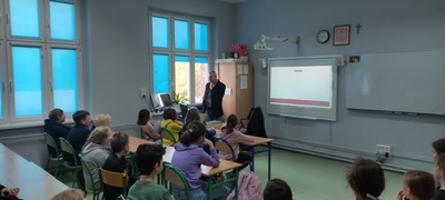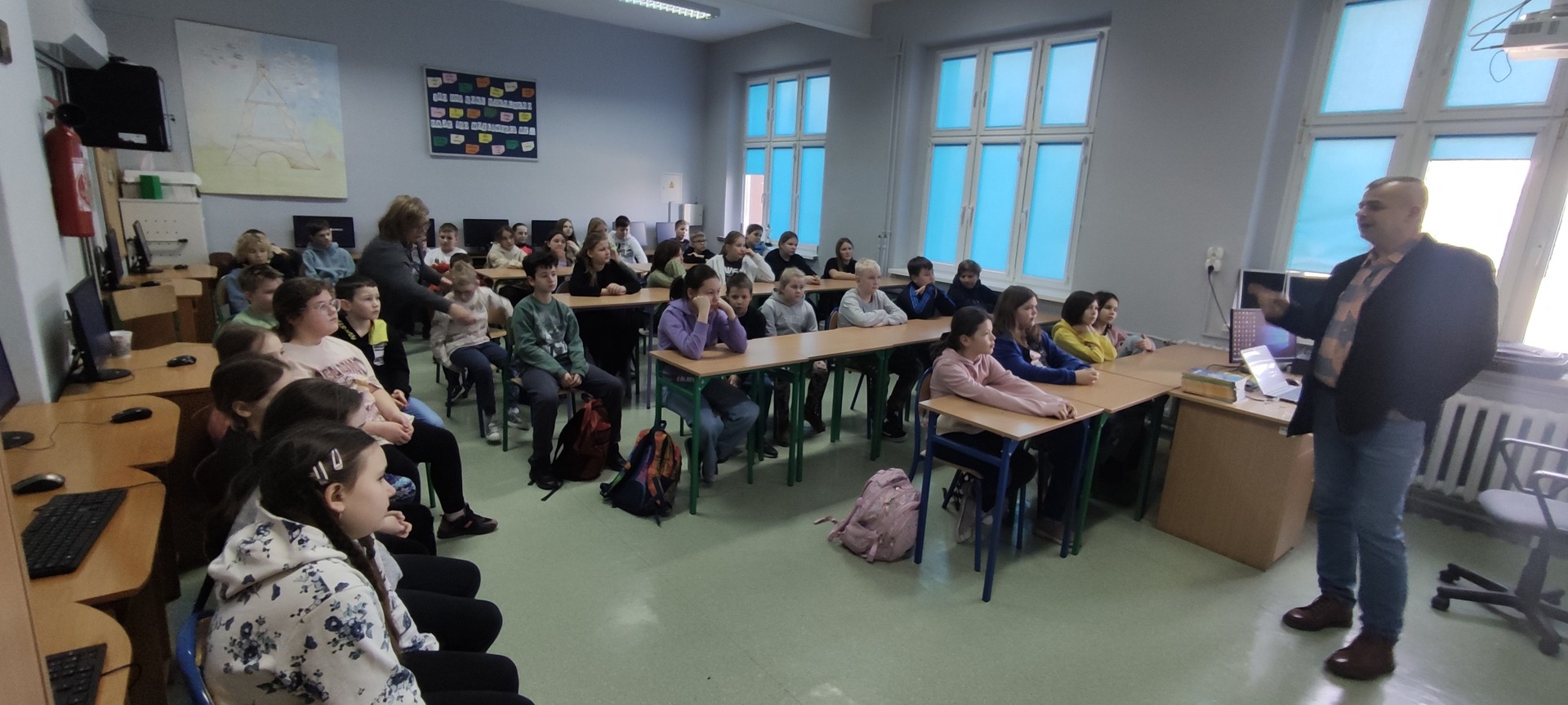 „Bezpieczeństwo korzystania z Internetu” oraz „Offline – online. Korzystanie z Internetu” to warsztaty, w których udział wzięli uczniowie klas III –VIII. Zajęcia poprowadził certyfikowany specjalista PARPA. Nadużywanie Internetu przez uczniów jest częstym problemem, dlatego warsztaty miały młodym uczestnikom uświadomić, jakie zagrożenia związane są z nadmiernym używaniem mediów oraz cyberprzemocą. Uczniowie dowiedzieli się też, jak zapobiegać zachowaniom ryzykownym związanym z używaniem mediów cyfrowych, zweryfikowali przekonania dotyczące korzystania z Internetu przez rówieśników, zwiększyli świadomość dotyczącą własnych schematów korzystania z sieci, nauczyli się rozpoznawać zachowania, które świadczą o bezpiecznym i niebezpiecznym używaniu Internetu. Ciekawe formy i metody: praca w grupach, burza mózgów, ankieta, sonda klasowa, dyskusja –pozwoliły na pełną realizację założonych celów warsztatów. Mamy nadzieję, że podjęte działania profilaktyczne zapobiegną wielu problemom związanym z nadużywaniem korzystania z Internetu. Pamiętajmy, „Bądźmy czujni, chrońmy dzieci, niech bezpiecznie serwują w Internetu sieci!”