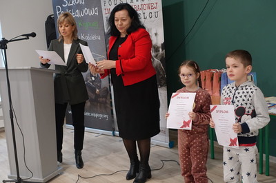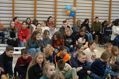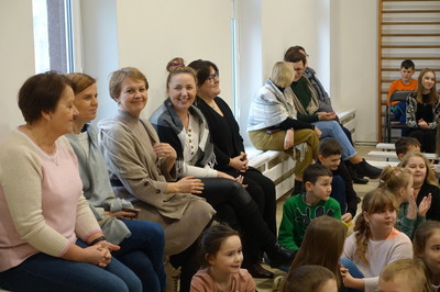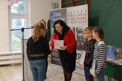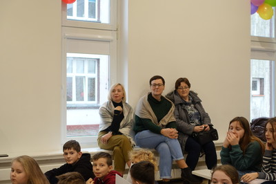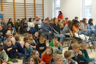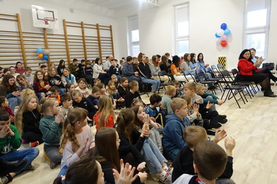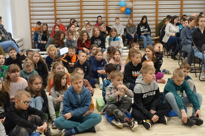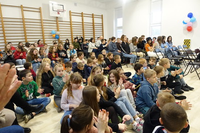 Pani Dyrektor podziękowała za wsparcie finansowe, dzięki któremu została wyremontowana sala gimnastyczna. W całkowicie odmienionej sali możemy ćwiczyć, organizować występy i szkolne imprezy. Ponadto w minionym semestrze nowy wystrój zyskała sala klasy VI, do której zakupiony został również monitor interaktywny, a przedszkole wzbogaciło się o kolejną tablicę interaktywną. Dzięki programowi Laboratoria Przyszłości pracujemy z drukarką 3D i pomocami wartymi 60.000 zł. Efektem pracy nauczycieli, rodziców i uczniów oraz wielu sponsorów, dzięki którym można było zorganizować XXIII Aukcję Bożonarodzeniową jest dochód w wysokości 7925 zł.