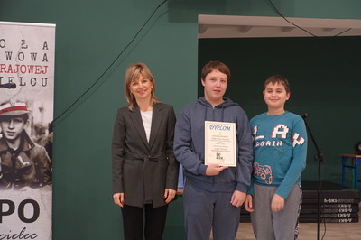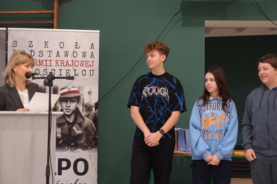 Klasa VII: Hubert Harenda, Kinga Małek, Laura Woźniak,