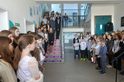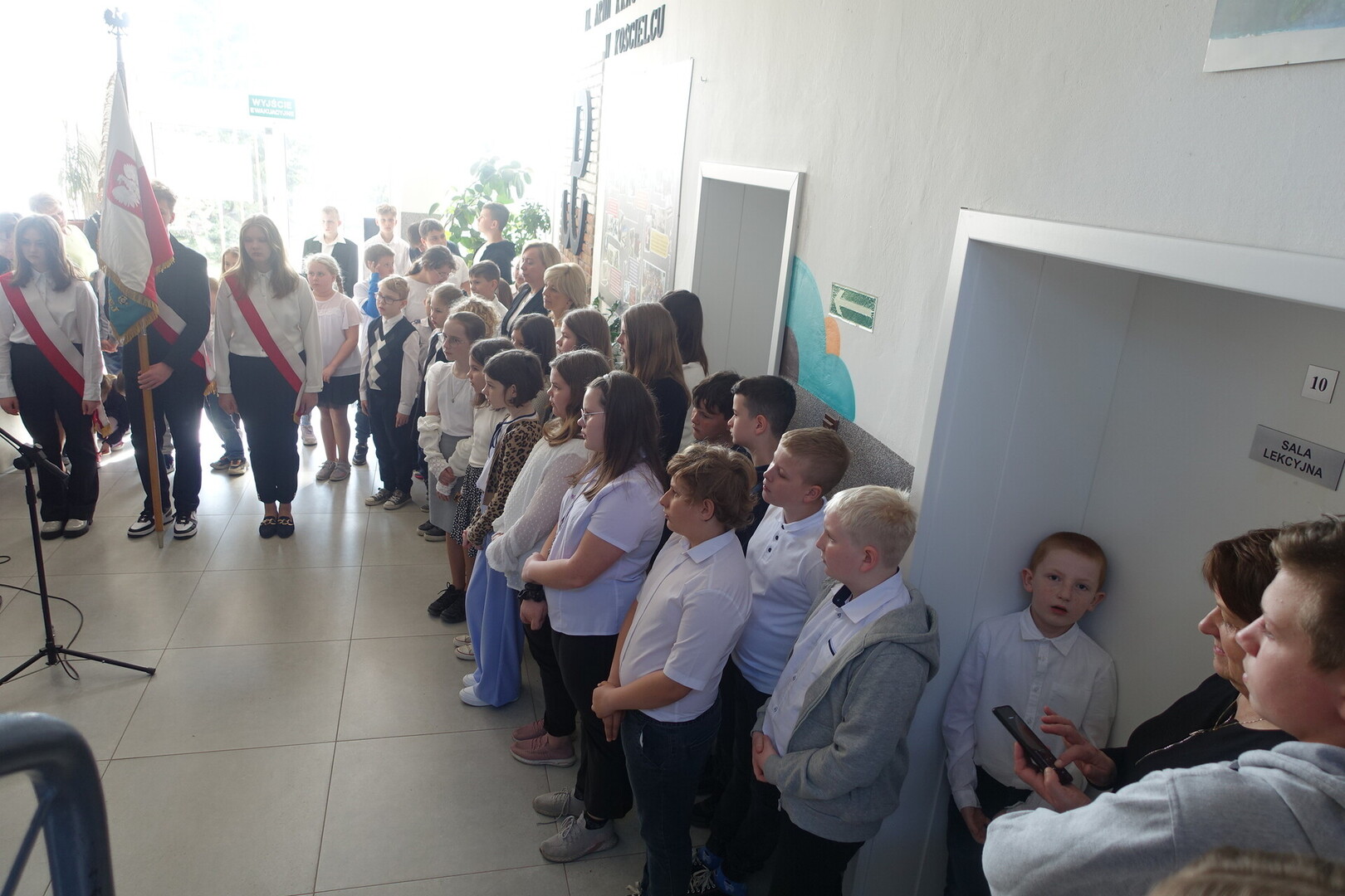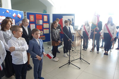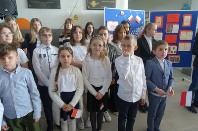 Przesłaniem występu przygotowanego przez uczniów była pamięć o ważnych historycznych wydarzeniach- bo to przeszłość buduje naszą przyszłość.