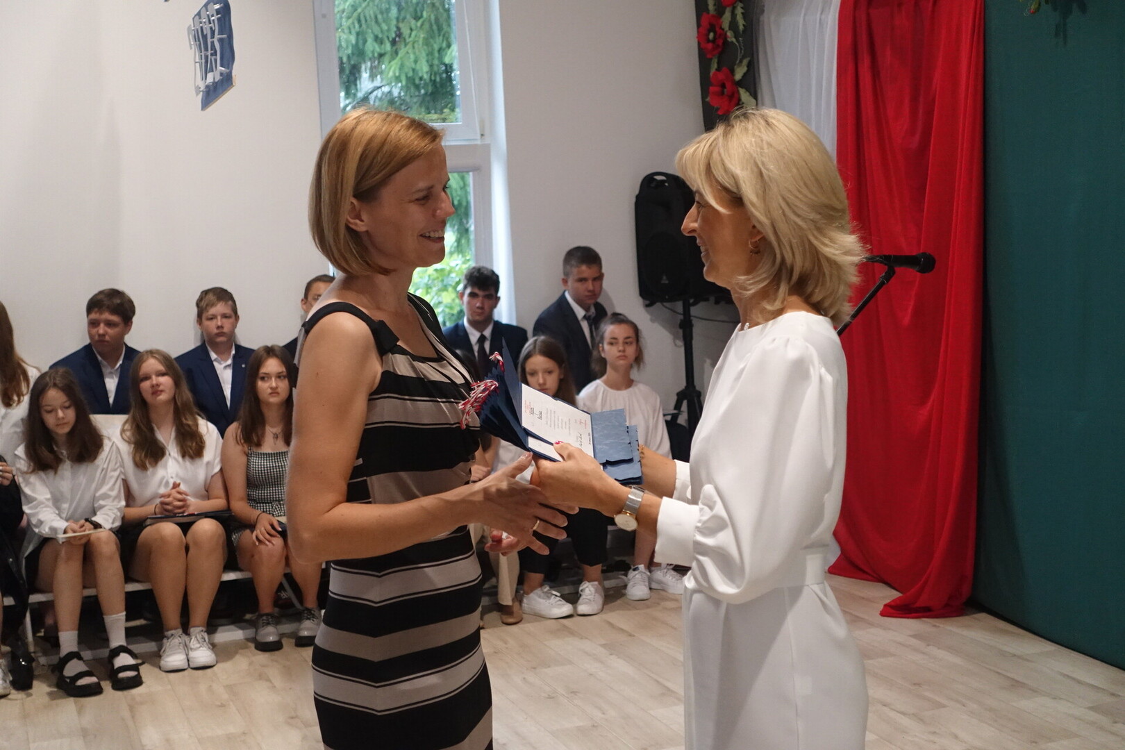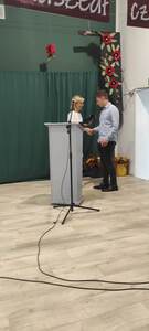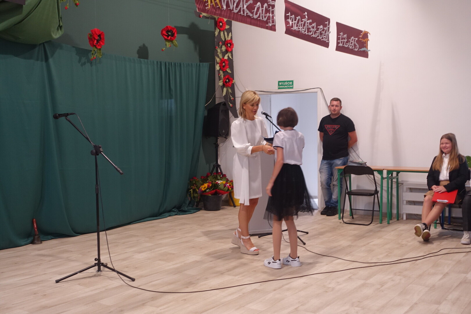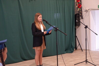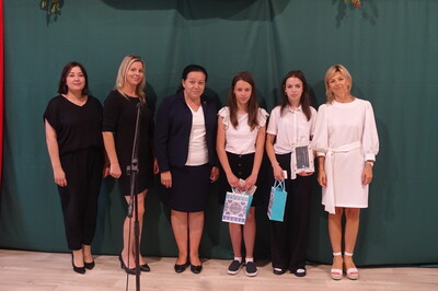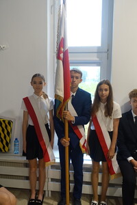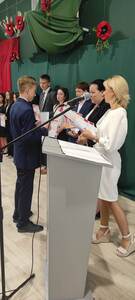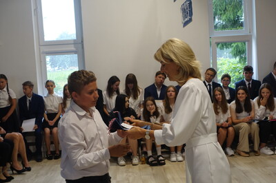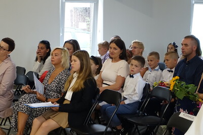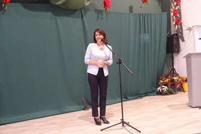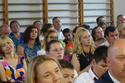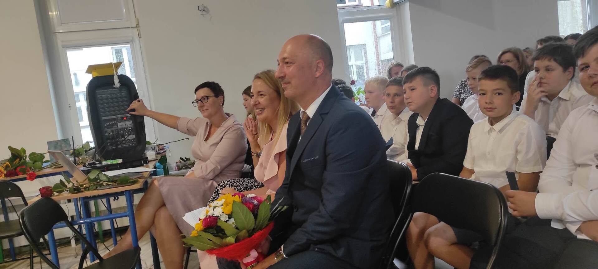 Naszą uroczystość zaszczyciło dużo gości, a jej gospodarzem była Pani Dyrektor Dorota Tulibacka. W trakcie uroczystości byliśmy świadkami przekazania na ręce Burmistrza Pakości Zygmunta Gronia, przez posła na Sejm RP Ewę Kozanecką promesy o wartości prawie 1370000 zł. z Programu „Olimpia” Ministerstwa Sportu i Turystyki. Program ten dofinansowuje budowę przyszkolnych hal sportowych lub budowę zadaszenia istniejących boisk. W naszym przypadku projekt dotyczy budowy zadaszenia boiska wielofunkcyjnego wybudowanego w 2021 roku przy wsparciu finansowym środkami z Programu Rozwoju Obszarów Wiejskich.