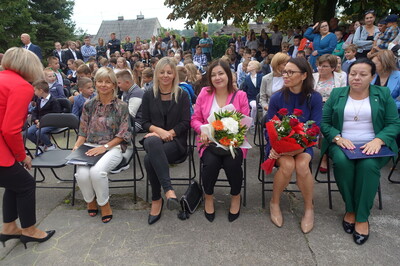 W spotkaniu szkolnej społeczności- grona nauczycielskiego, uczniów, rodziców, pracowników udział wzięli zaproszeni goście: p. Róża Sielecka- zastępca burmistrza Pakości oraz p. Agnieszka Chlebicka- kierownik CUW w Pakości.