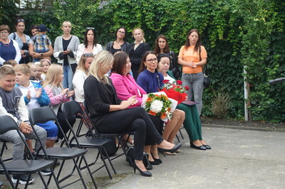 Wzruszenie i emocje towarzyszyły przy podziękowaniu za 40-letnią pracę w szkole pani Jolancie Nieznalskiej, która z dniem 1 września 2023 r. przeszła na emeryturę.