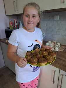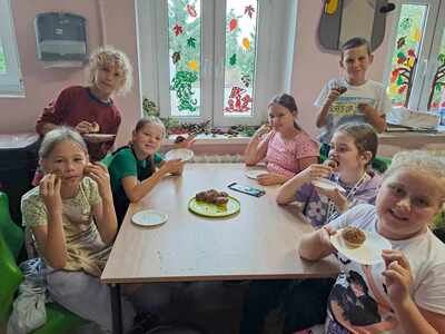 Uczniowie świetnie się bawili i z przyjemnością próbowali swoich wypieków. Było smacznie, zabawnie i bardzo kolorowo