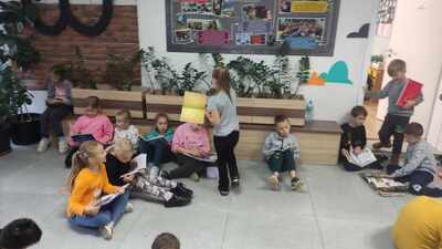 26. 10. 2023 r. w Szkole Podstawowej im. Armii Krajowej w Kościelcu odbyła się akcja "Przerwa na czytanie"