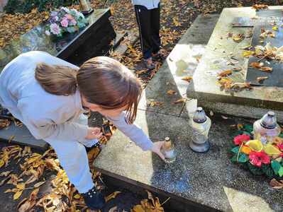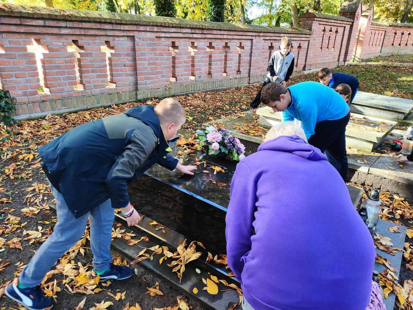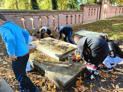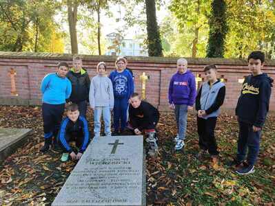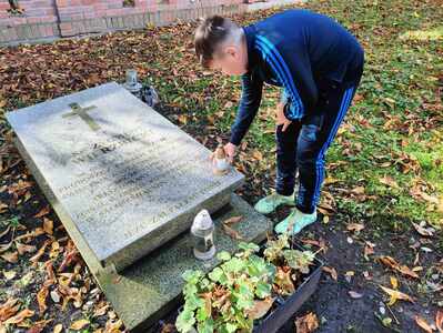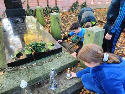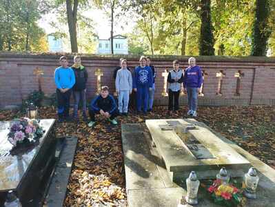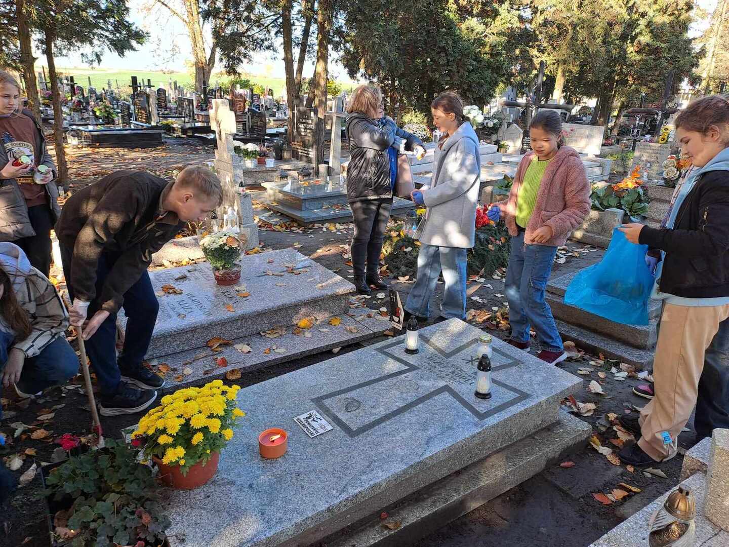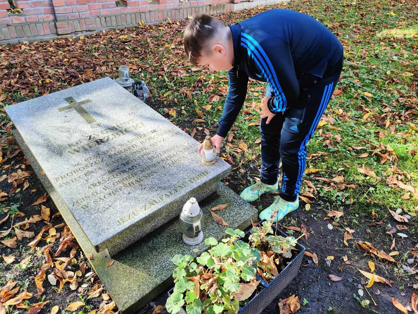 Szkolni wolontariusze uczcili pamięć o bohaterach naszej wolności zapalając światełko pamięci na grobach Powstańców Wielkopolskich na cmentarzu parafialnym w Kościelcu.