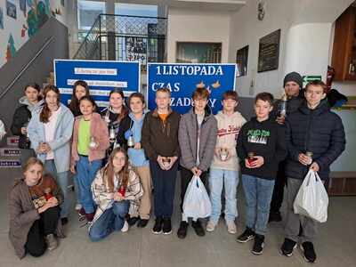 Wolontariusze poprzedzili akcję zbiórką zniczy wśród uczniów z naszej szkoły.