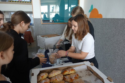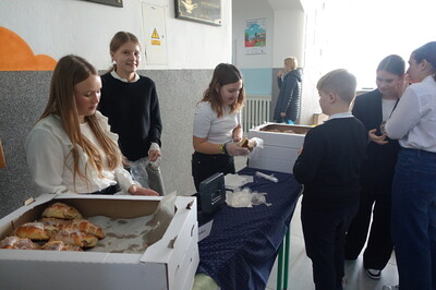 Uczennice VI klasy już od samego rana sprzedawały przepyszne rogale