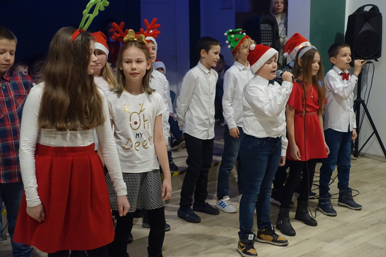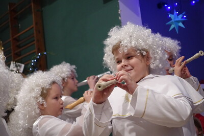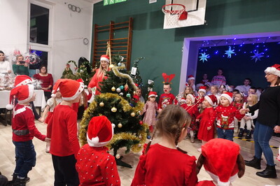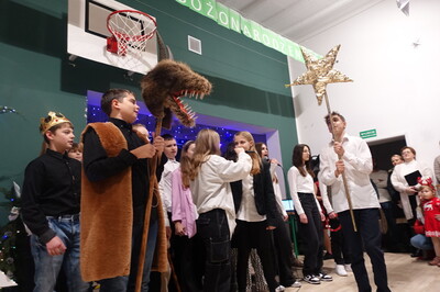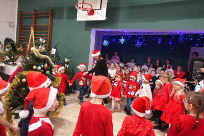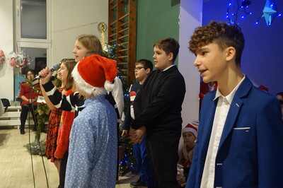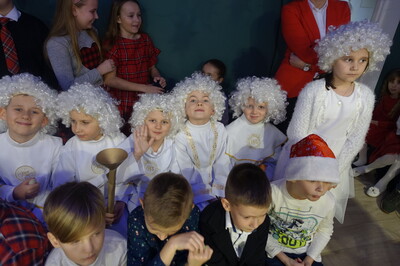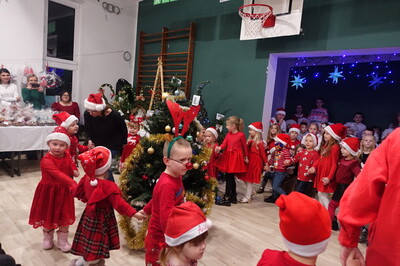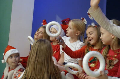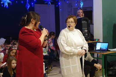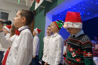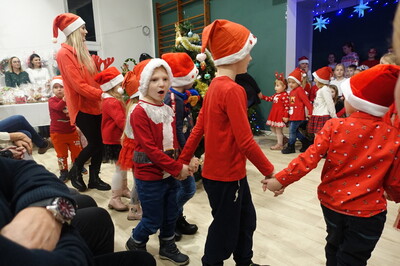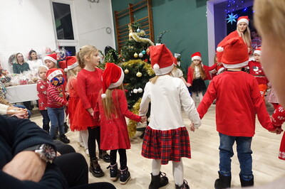 W dalszej części spotkania nasi przedszkolacy i uczniowie dali niezwykle piękny popis tańca i śpiewu kolęd