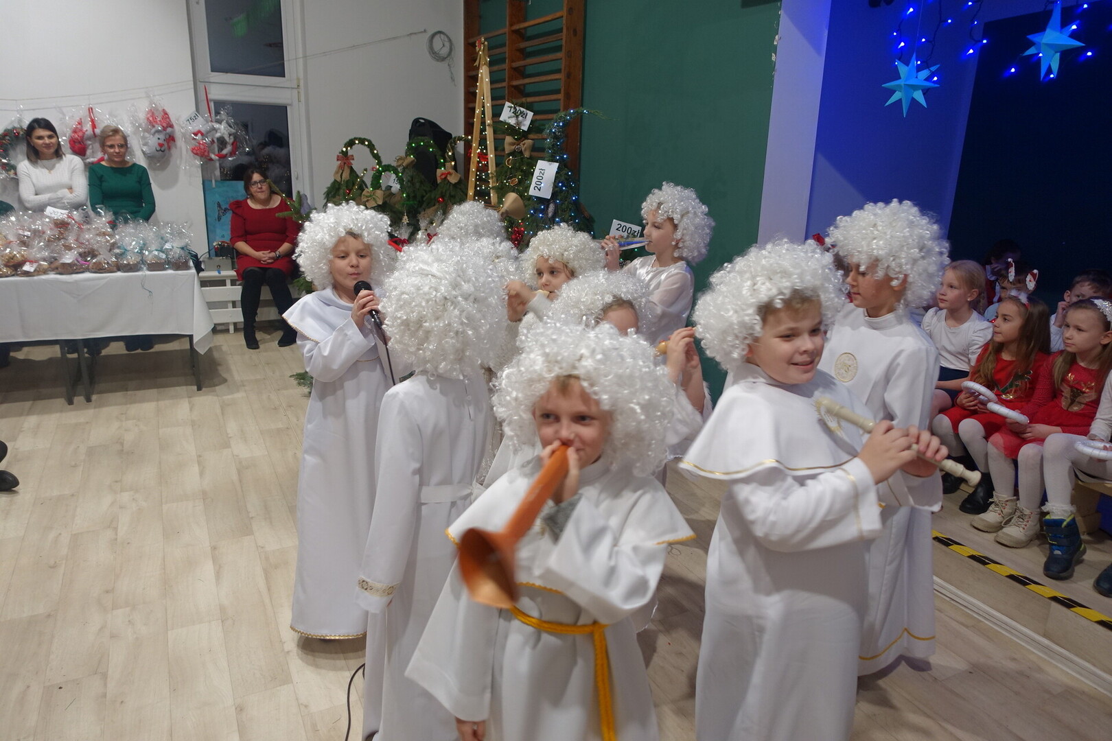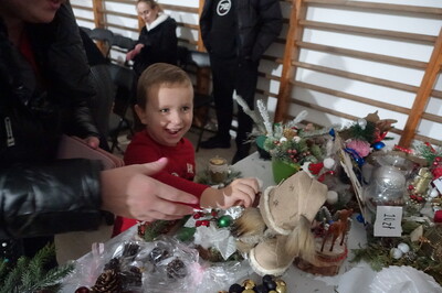 Jednocześnie rodzice prowadzili sprzedaż kiermaszową. Trzeba przyznać, że z roku na rok można obserwować, jak zmieniają się trendy w sztuce robienia świątecznych stroików, ozdób, choinek, skrzatów, piernikowych domków i wszelkich wypieków. Pomysłowość wykonawców jest godna podziwu, a efekt końcowy zachwyca obserwujących