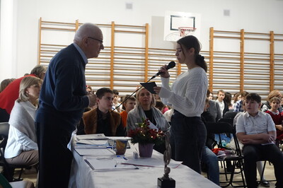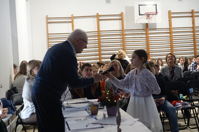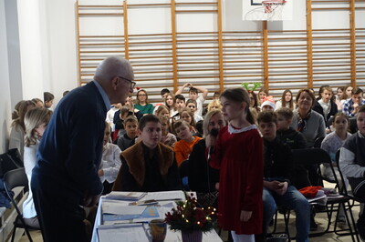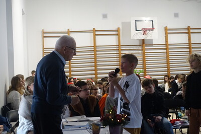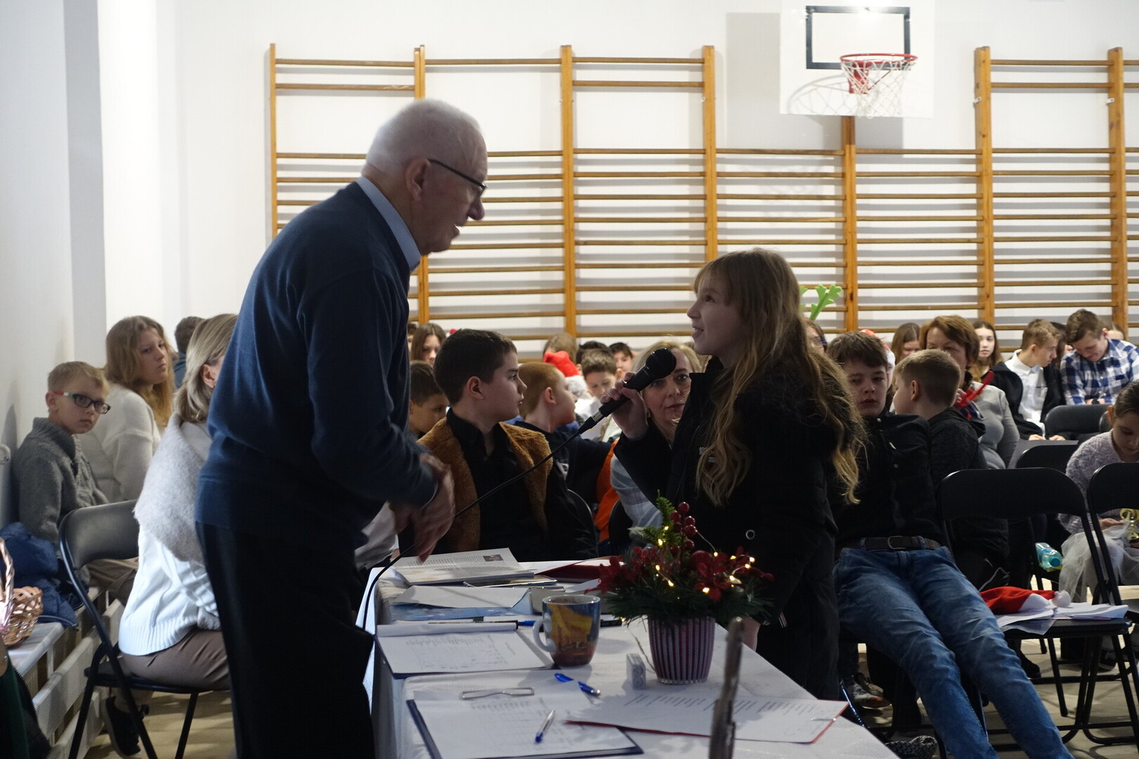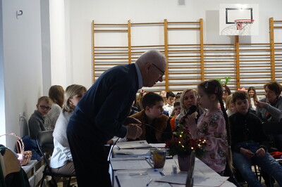 Dziś mieliśmy niezmierną przyjemność gościć absolwenta naszej szkoły p. Tadeusza Bogusza, który ponad 70 lat temu rozpoczął naukę w kościeleckiej podstawówce. Bezcenne wspomnienia z tamtych lat, niesamowicie ciekawe informacje z historii szkolnych murów, opowieści o ludziach, zdarzeniach tworzących tożsamość szkoły wypełniły spotkanie naszego absolwenta z obecną społecznością szkolną.