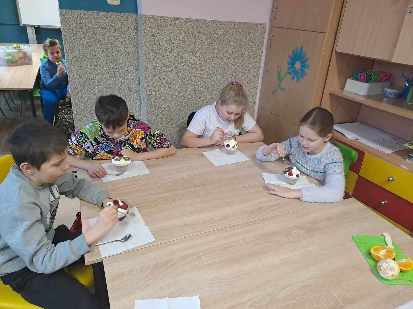 Jak zatem komponować i serwować posiłki, aby pobudzały nasz apetyt już „od pierwszego wejrzenia”? Tego uczyli się dzisiaj uczniowie podczas zajęć z Kółka Kulinarnego. Desery które wykonali były nie tylko smaczne ale i pięknie udekorowane