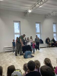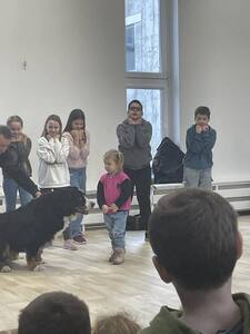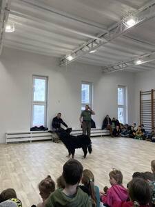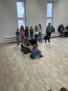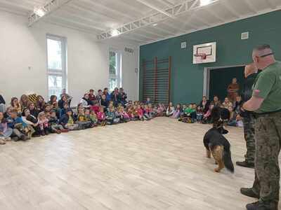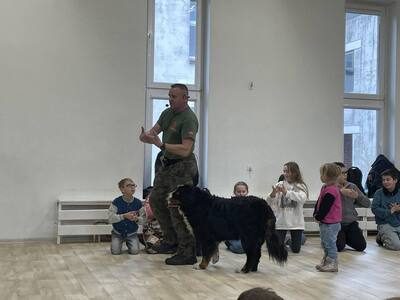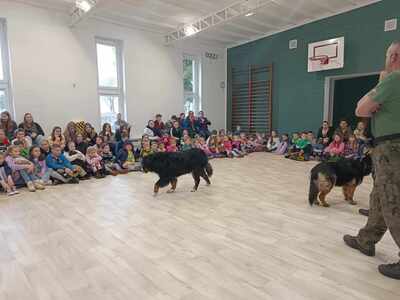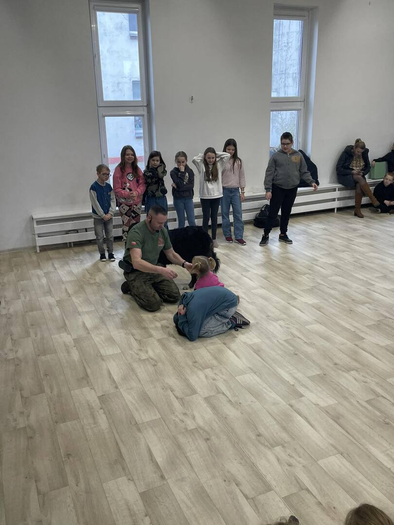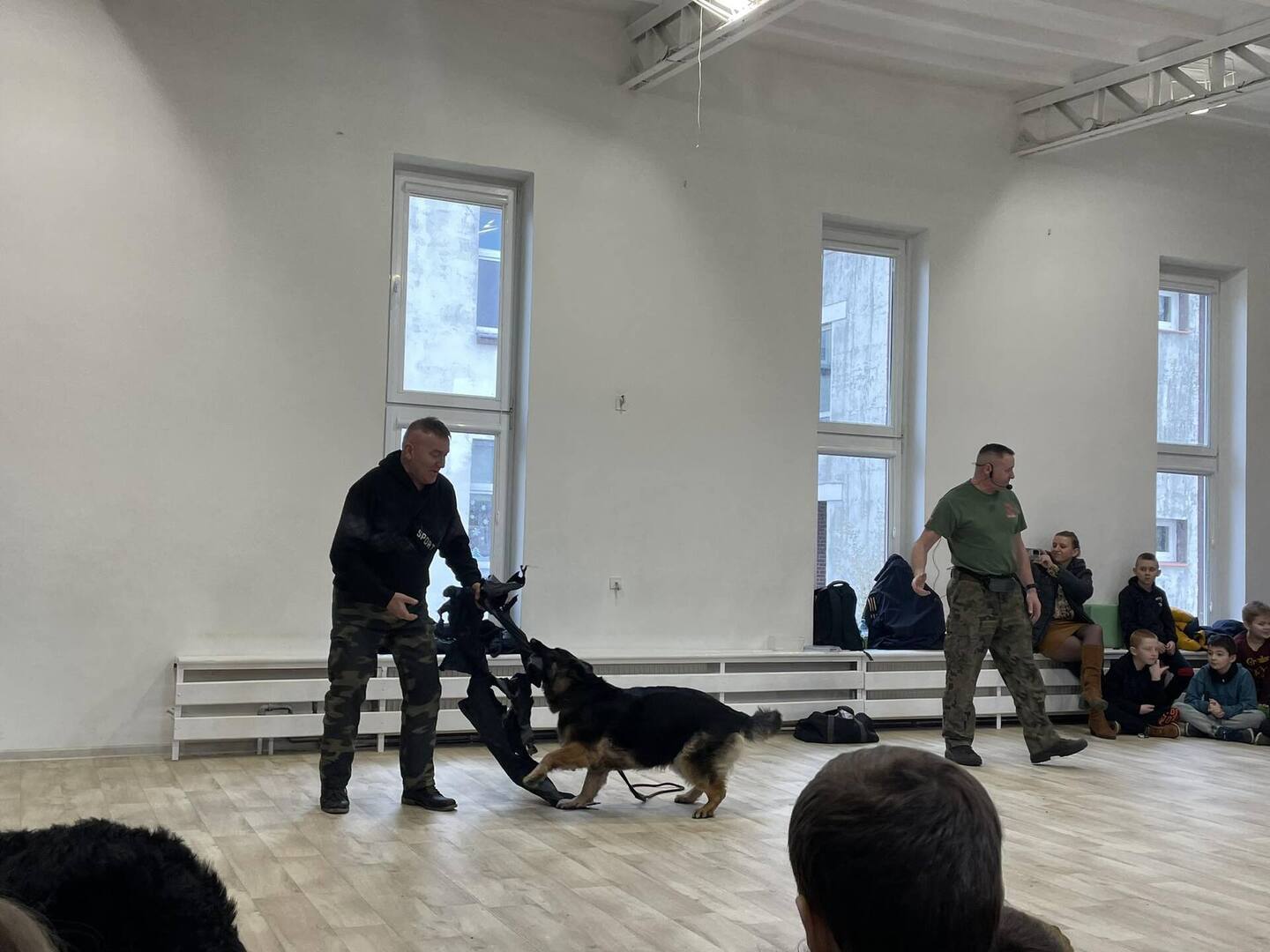 Ciekawa pogadanka, pokaz tresury psa na posłuszeństwo i pożyteczne informacje na temat prawidłowego postępowania z czworonogami wypełniły dzisiejsze szkolenie „Samoobrona przed psem”