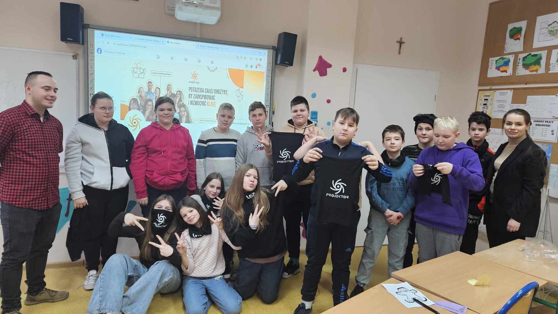 Warsztaty z Projektorem z klasą V i VII w szkole podstawowej w Kościelcu zakończone. Każda z klas spotkała się dwukrotnie z wolontariuszem Jakubem Józefczykiem i panią koordynator Marią Redzimską z Programu Projektor. Tematem zajęć było omówienie metodą planowania i analizowania potrzeb środowiska przyrodniczego. Na zajęciach uczniowie doszli do wniosku, że zmiany w środowisku są potrzebne, że należy je wprowadzać zaczynając od małych czynów wokół nas samych. Wspólnymi siłami wypracowali projekt ekologicznej torby. Dzieci w czasie zajęć tworzyły również mikroprojekty na temat ochrony środowiska, poprawy relacji społecznych oraz bezpiecznej aktywności w Necie. Wszystko to z wykorzystaniem różnorodnych technik, w celu wzmocnienia pracy zespołowej oraz aktywności uczniów.