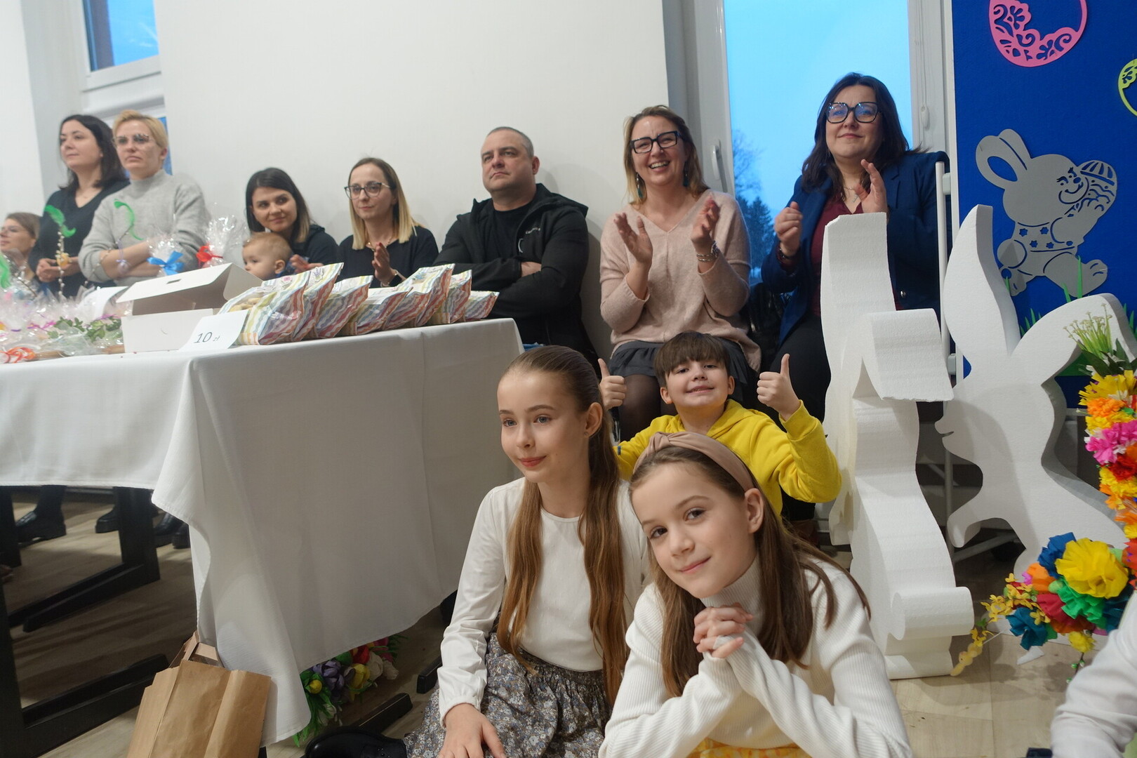 . Wszystkie prace wykonane ręcznie, prawdziwe dzieła sztuki kulinarnej, szydełkowej, krawieckiej, drewnianej i wszystkie odpowiadające wielkanocnym tradycjom. Nasza świąteczna impreza cieszyła się niezwykłą popularnością. Przybyło bardzo dużo gości, rodziców, nauczycieli i uczniów, absolwentów. Wszystkich zebranych przywitała Pani Dyrektor Dorota Tulibacka. Złożyła świąteczne życzenia, a uczniowie zaprezentowali wiosenny występ. Dziękujemy uczestnikom za liczne przybycie i kupowanie. Zebrana kwota w wysokości 4100 zł przyczyni się do lepszego funkcjonowania naszej placówki i wróci w innej już formie do naszych uczniów. Dziękujemy organizatorom, współorganizatorom, pomocnikom, rodzicom i tym, którzy zechcieli wykonać piękne prace i przekazać je na rzecz kiermaszu