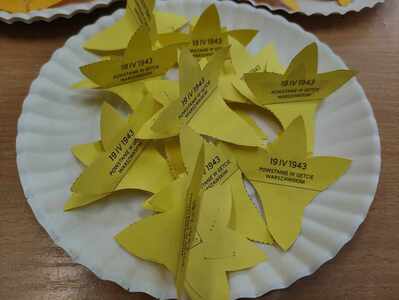W 81 rocznicę Powstania w getcie warszawskim tj. 19 kwietnia uczniowie obejrzeli film edukacyjny "Nie było żadnej nadziei. Powstanie w getcie warszawskim 1943" oraz upamiętnili Bohaterów walczących w GETCIE WARSZAWSKIM rozdając wcześniej przygotowane żonkile
