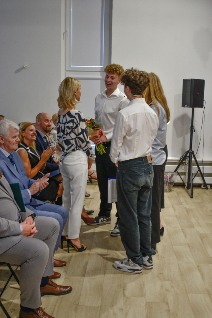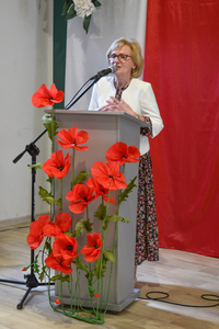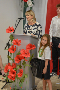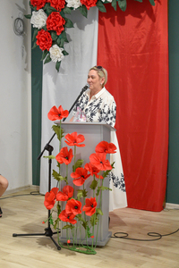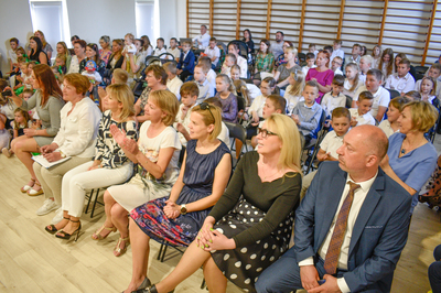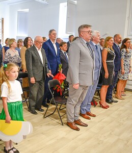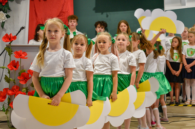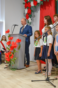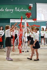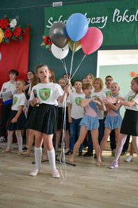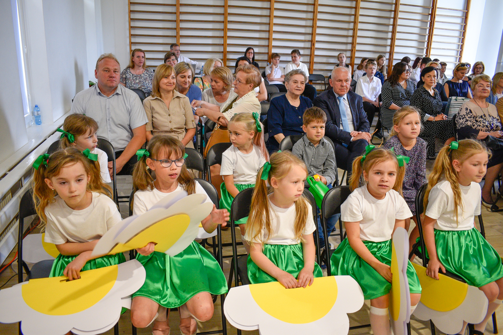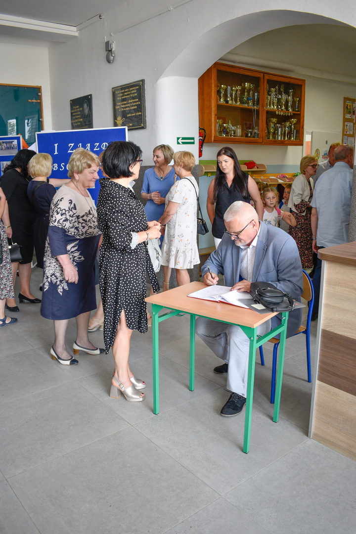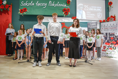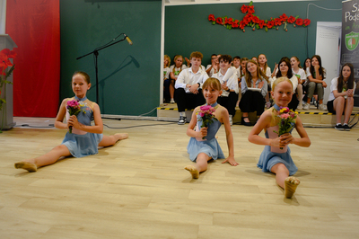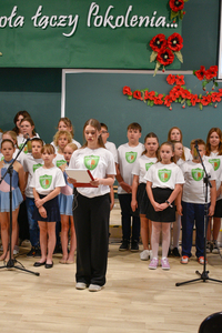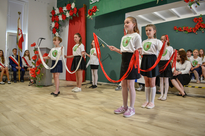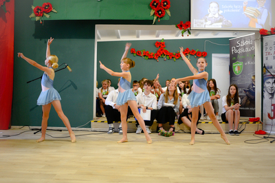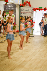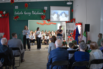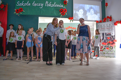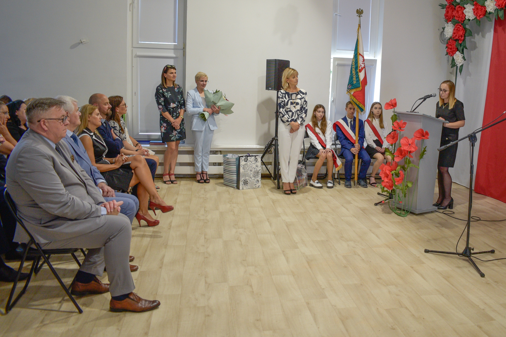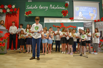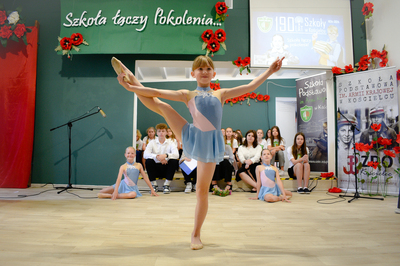 Przedstawienie przygotowane dla naszych gości było niezwykle wzruszające i pięknie oddawało specyfikę obchodów. Był to nie tylko pokaz talentów artystycznych naszych uczniów, ale przede wszystkim wartościowy przekaz do wszystkich grup uczestników. Uczestnicy emocjonalnie reagowali na to, co działo się na scenie, przeżywali swoje wspomnienia i odnosili się do własnych -nie tylko szkolnych doświadczeń. Wykonawcami byli obecni uczniowie, nasi absolwenci Maria, Estera, Kuba i Wiktor, jak również nasze urocze przedszkolaki. Całe przedstawienie w charakterystyczny sposób pokazało szkołę dawną, tę z lat 20-tych ubiegłego wieku, jak również szkołę z PRL-u i lat współczesnych. Dało to niezwykły efekt, gdyż uświadomiło nam o wielopokoleniowości szkolnego życia i nierozerwalności społeczności szkolnej i lokalnej. Wszyscy jesteśmy ze szkołą związani, jest ona częścią życia każdego człowieka. Spędzamy w niej długie lata, przeżywamy w niej smutki i radości. Dlatego uroczystości takie jak nasza są elementem nauki i wychowania. Od tego bowiem zależy jakie społeczeństwo w przyszłości będzie narzucać warunki życia i nauki następnym pokoleniom. Taki był ogólny sens bardzo interesującego wystąpienia pani dyrektor Doroty Tulibackiej, w którym zwróciła również uwagę na znaczenie historii i tradycji w wychowywaniu dzieci i młodzieży. Niezwykła podróż w czasie, którą przeżyliśmy w trakcie występu, została nagrodzona gromkimi brawami, a szkolni artyści zebrani wiele pochwał za pełne energii i emocji przedstawienie.