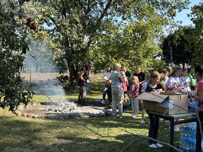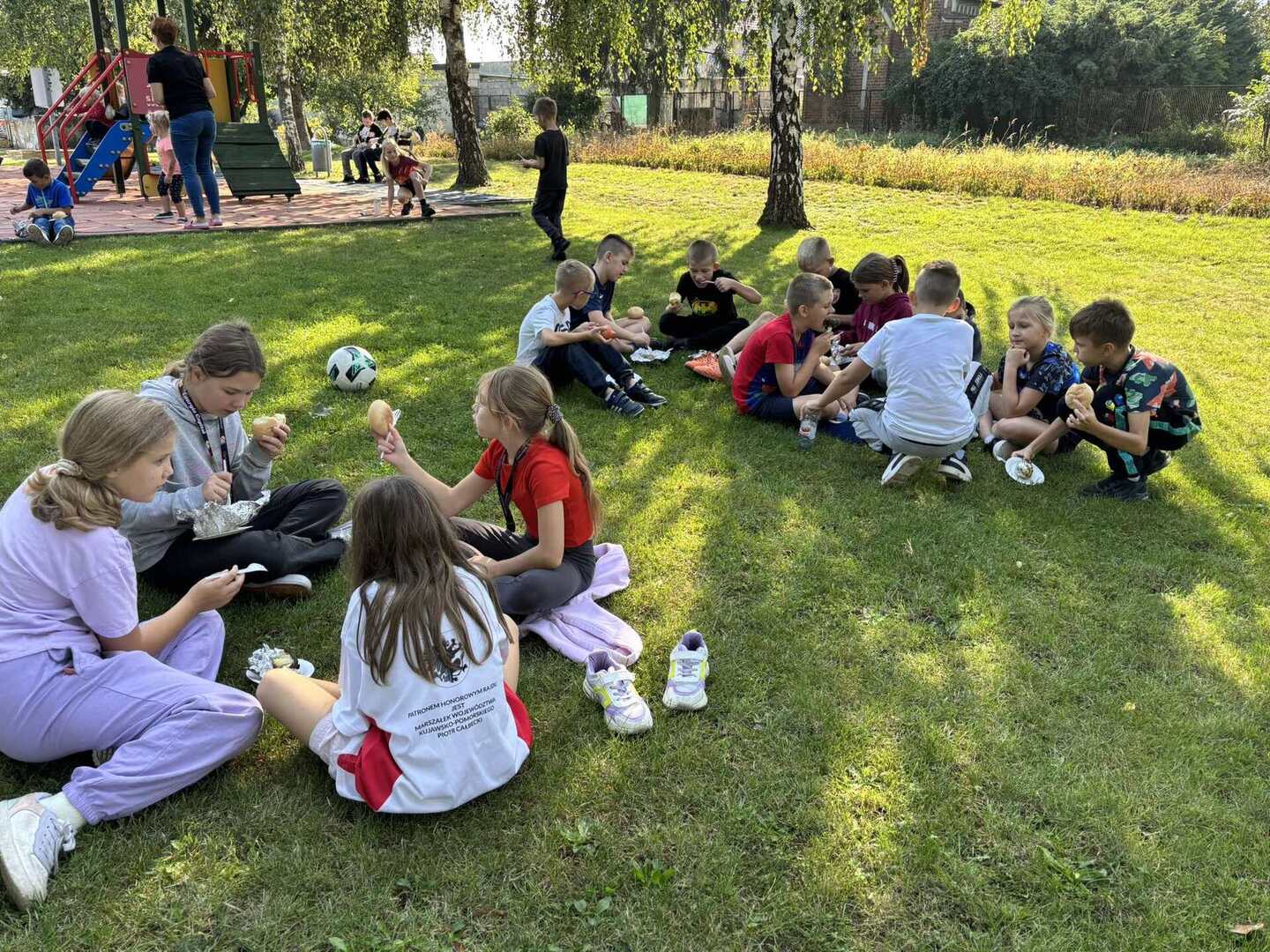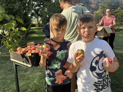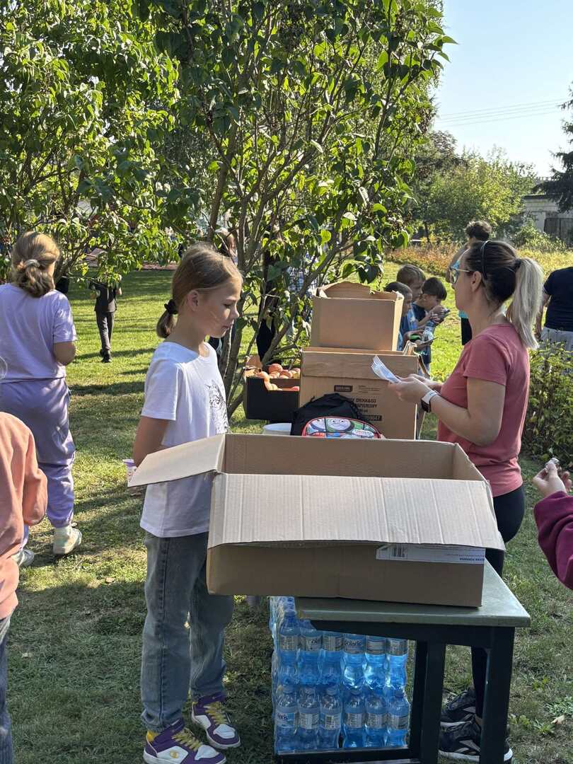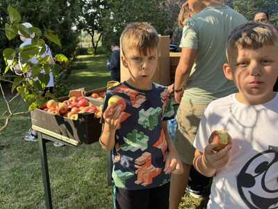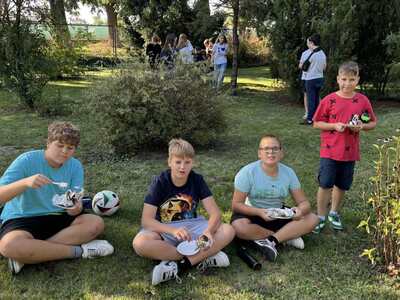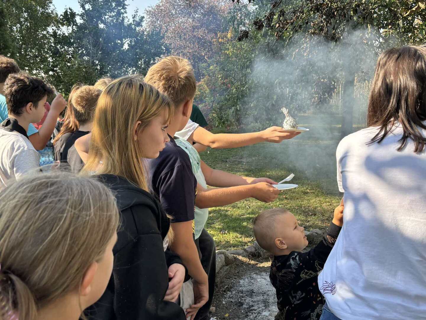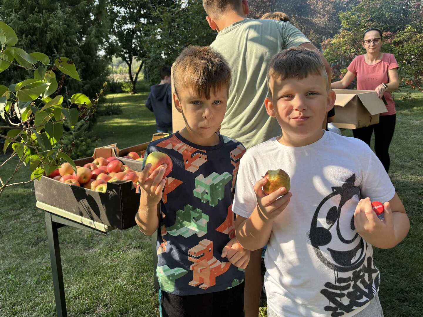 Słowa wdzięczności dla pana Michała Bogusza, który zapewnił drewno na ognisko i obdarował wszystkich uczniów owocowym deserem- pysznymi jabłkami.