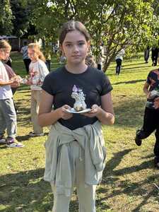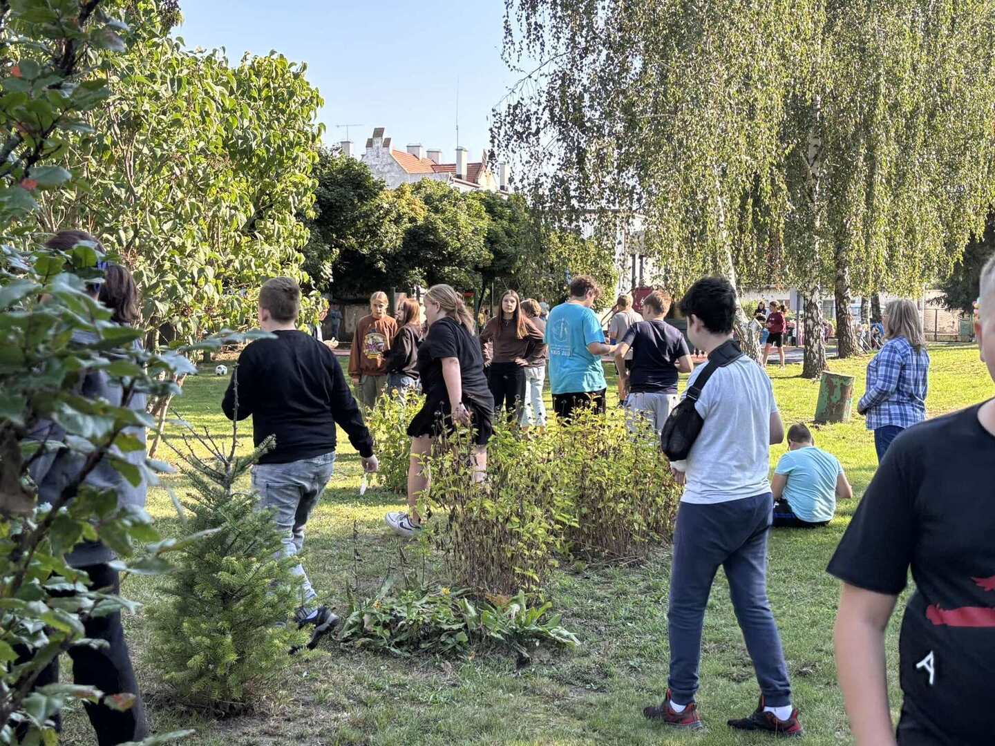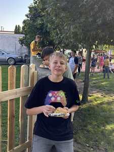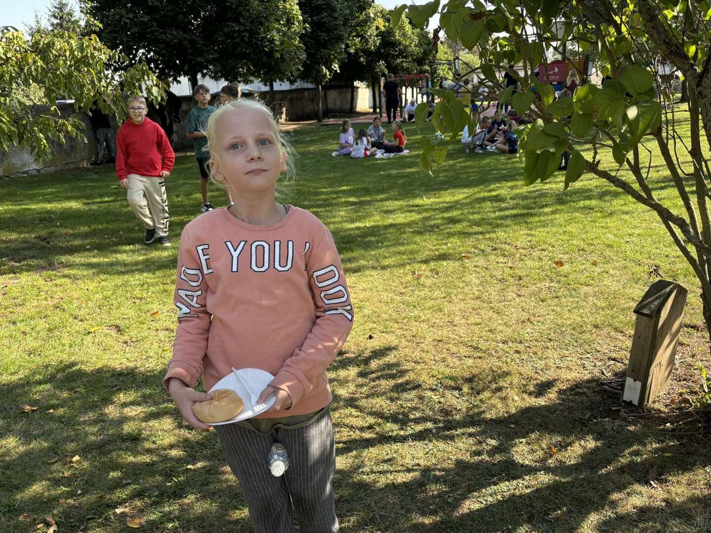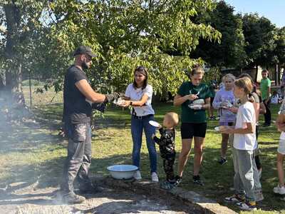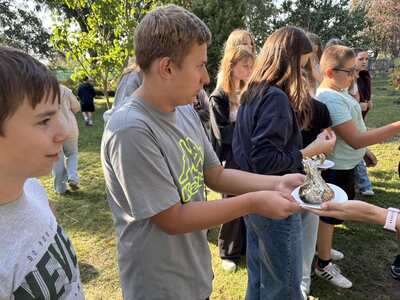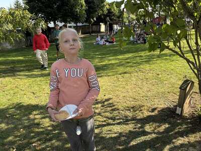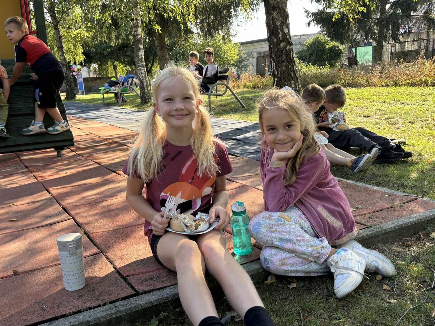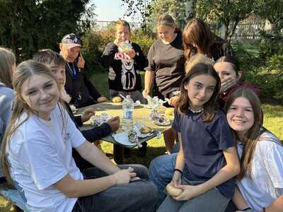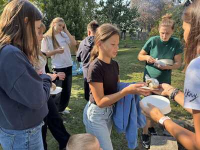 Słowa wdzięczności dla pana Michała Bogusza, który zapewnił drewno na ognisko i obdarował wszystkich uczniów owocowym deserem- pysznymi jabłkami.