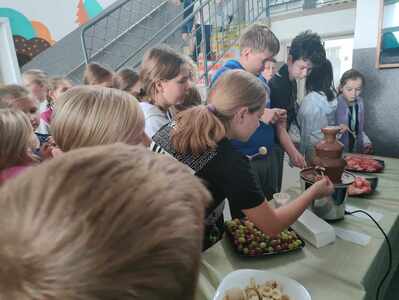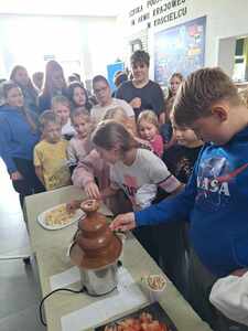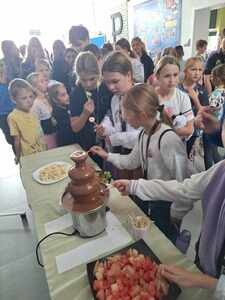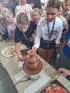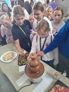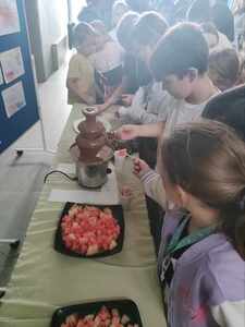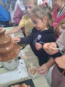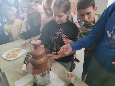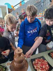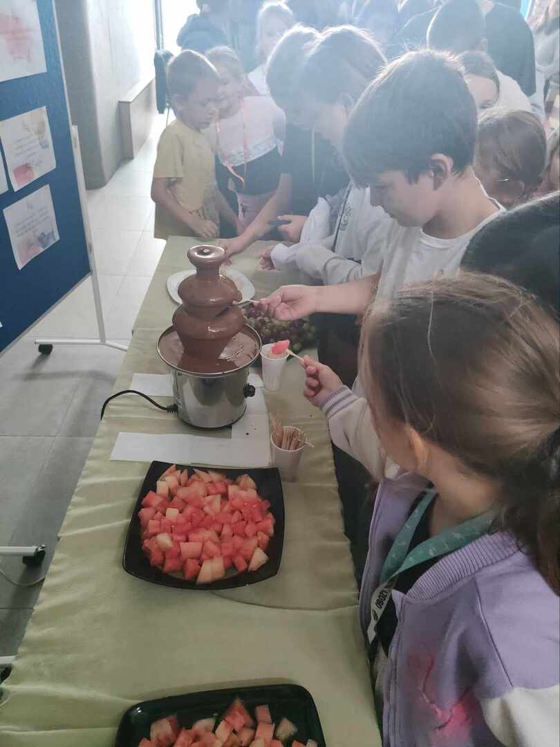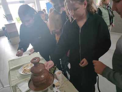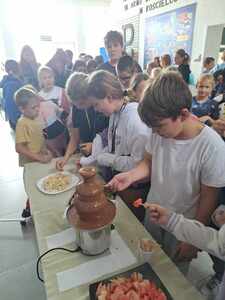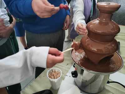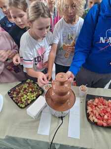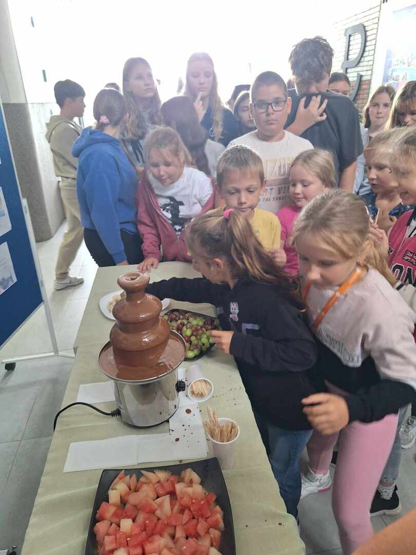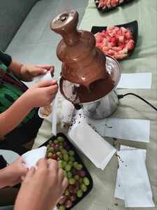 Ostatecznie podczas Święta Szkolnej Wspólnoty podnieśliśmy endorfiny szczęścia porcją owoców skąpanych w fontannie czekolady.
