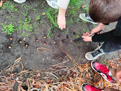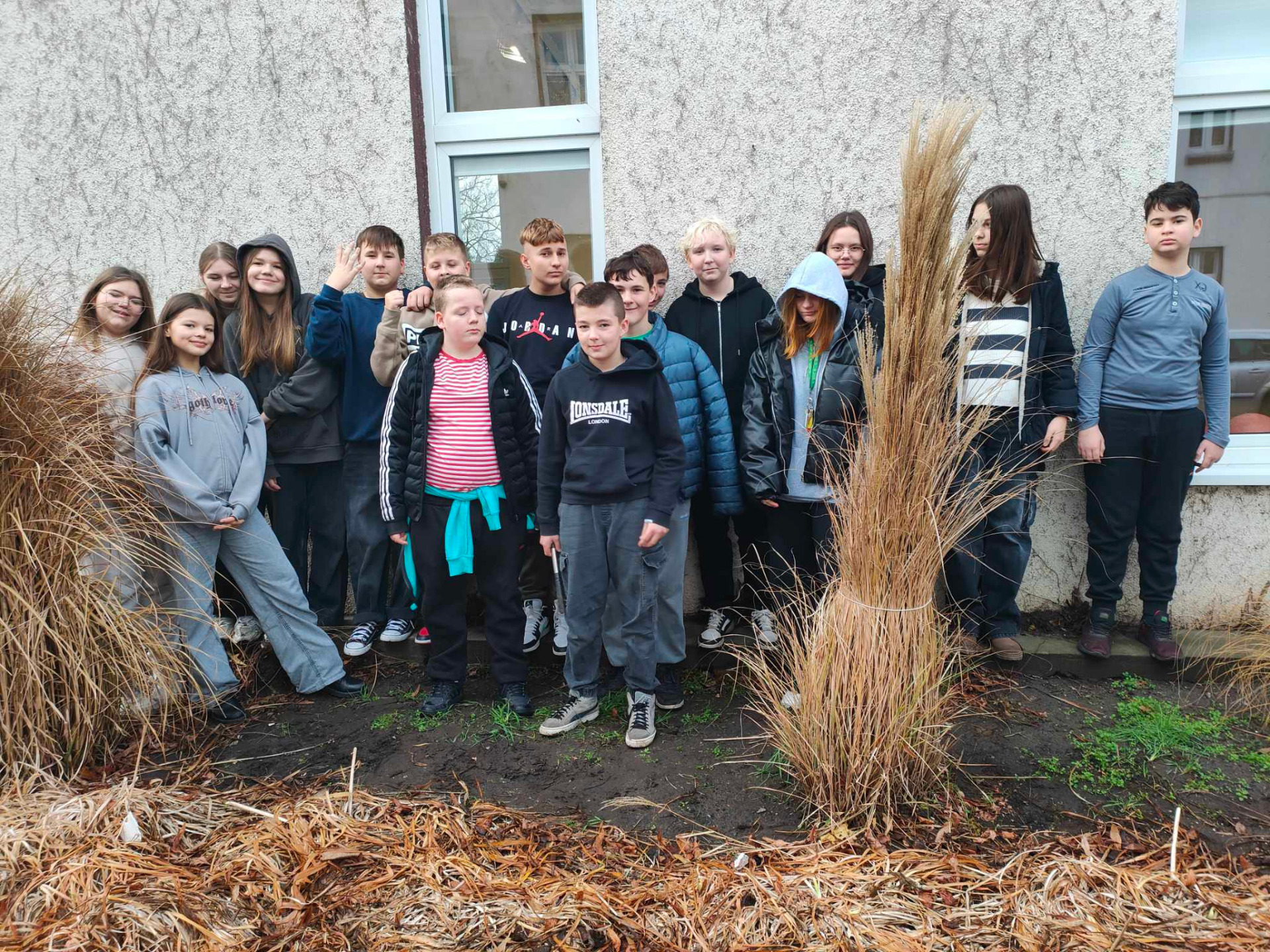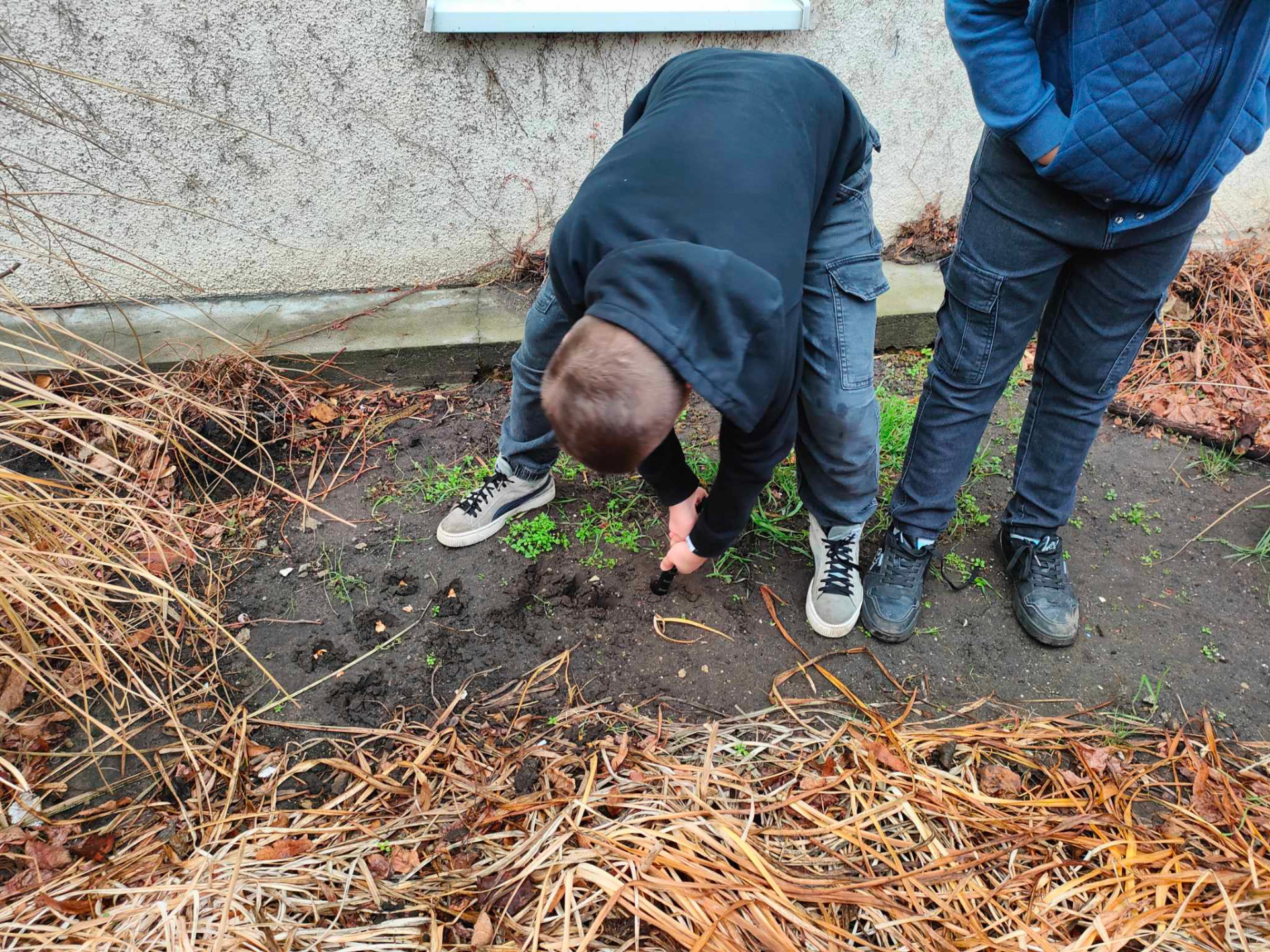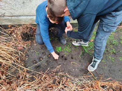 Uczniowie klasy VI wspólnie zasadzili krokusy symbolizujące pamięć o ofiarach Holokaustu wśród dzieci oraz nadzieję na lepszą przyszłość.