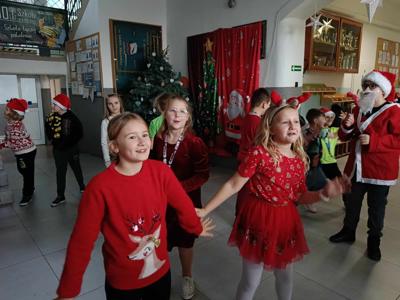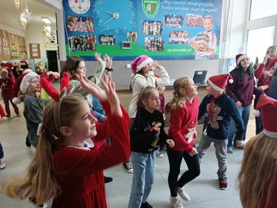 Śmiech i muzyka rozbrzmiewały w całej szkole, a mikołajkowy taniec stał się okazją do integracji uczniów z różnych klas