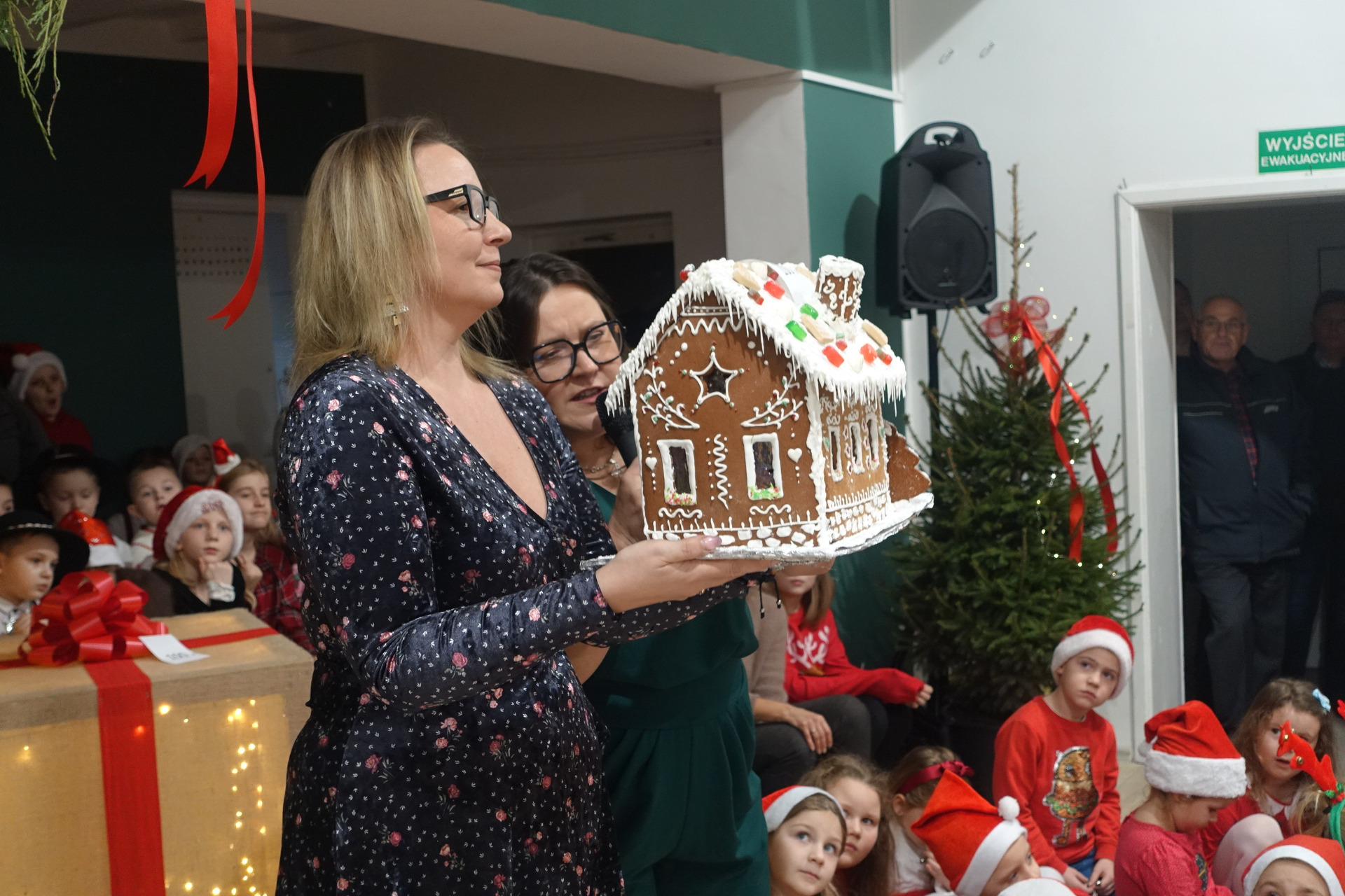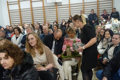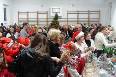 Spotkanie w szkolnej sali gimnastycznej rozpoczęła Pani dyrektor Dorota Tulibacka, która powitała zebranych gości i podziękowała wszystkim organizatorom, sponsorom, pomocnikom, bo dzięki nim tegoroczna uroczystość mogła zaistnieć w pełnej krasie. Wśród gości znaleźli się przedstawiciele władz gminnych na czele z burmistrzem Pakości Panem Michałem Siembabem, grono pedagogiczne naszej szkoły wraz z pracownikami administracyjnymi, rodzice, uczniowie, przedszkolacy oraz nasi szkolni przyjaciele. Przed tak szeroką publicznością wystąpili najmłodsi milusińscy, uczniowie wszystkich klas, prezentując uroczy świąteczny repertuar i wprowadzając wszystkich w odpowiedni nastrój. Występy uczniów przeplatane były licytacjami świątecznych dekoracji, ozdób, stroików, choinek, skrzatów i całej gamy smakowitych wypieków. Nie zabrakło też szopek, piernikowych domków, a nawet całych zagród. Potem można już było kupować, kupować i kupować.