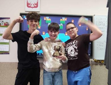 Nagrodą w konkursie był puchar, który pomysłodawcy i organizatorzy turnieju ( Janek, Maciej i Mikołaj) wydrukowali na drukarce 3D. Drukarka została zakupiona w ramach projektu #LaboratoriaPrzyszlosci