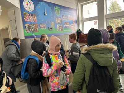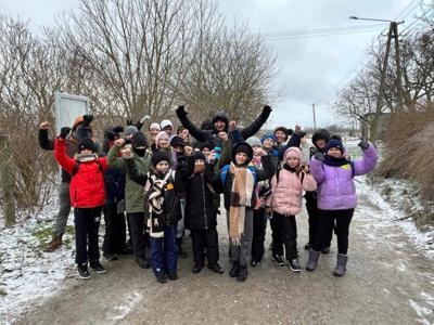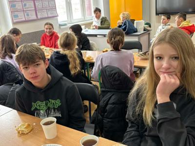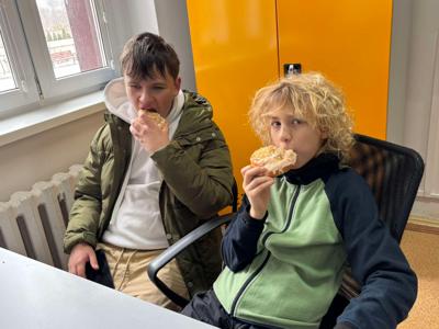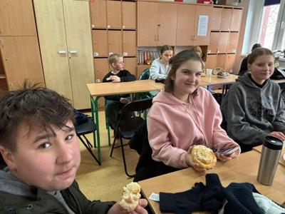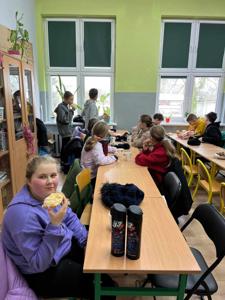 wszyscy szczęśliwie dotarli do naszej szkoły, gdzie wzmocnili siły ciepłą herbatą, drożdżówkami i kiełbaskami z grilla