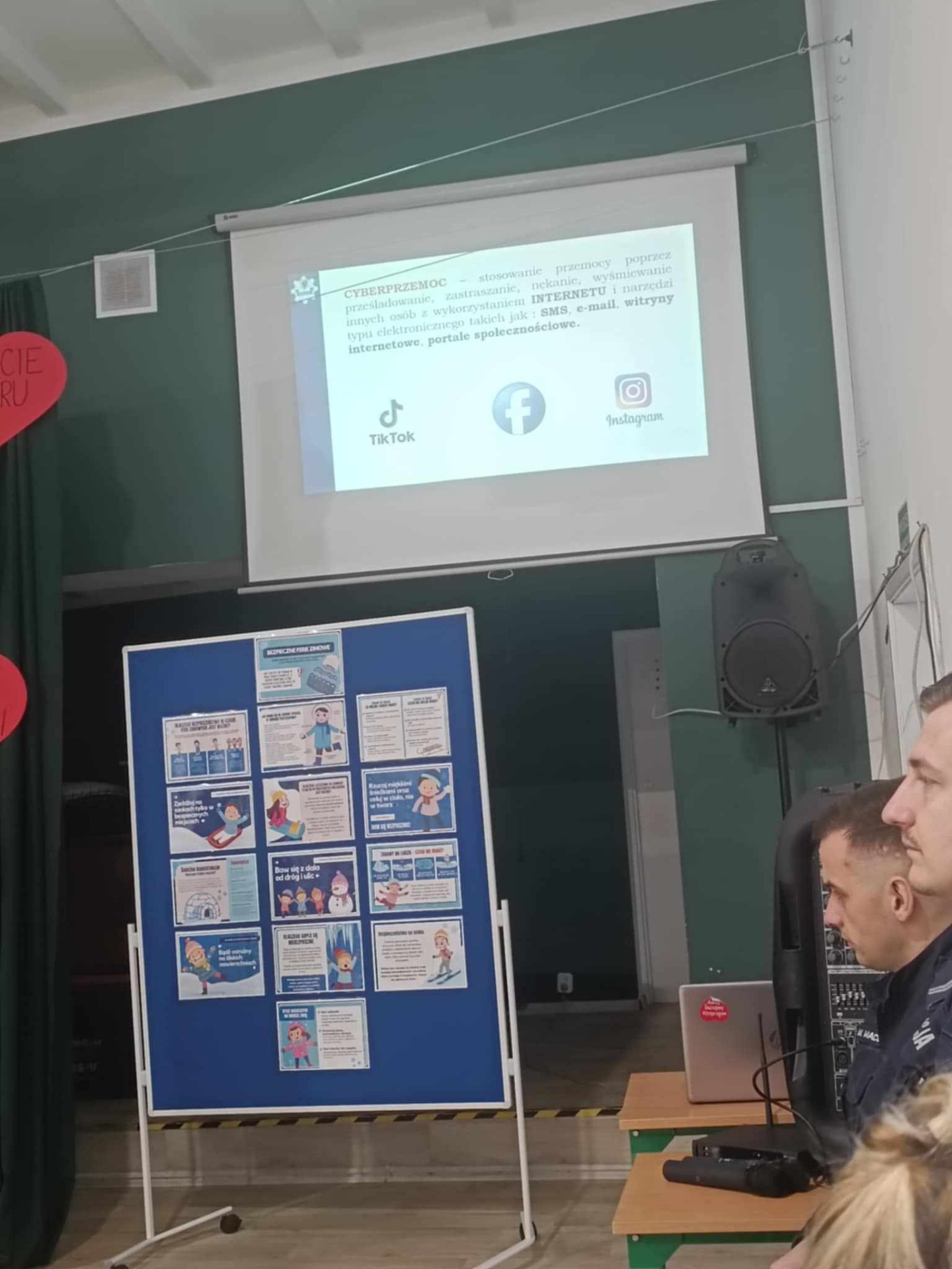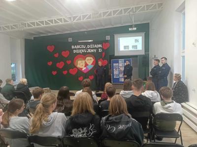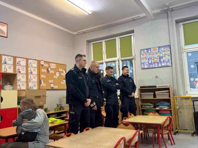 Dodatkowo z uczniami klas VII- VIII poruszona została tematyka agresji i przemocy rówieśniczej, cyberprzemocy, odpowiedzialności prawnej nieletnich za popełnione przestępstwa oraz ścieżki zawodowej policjanta.