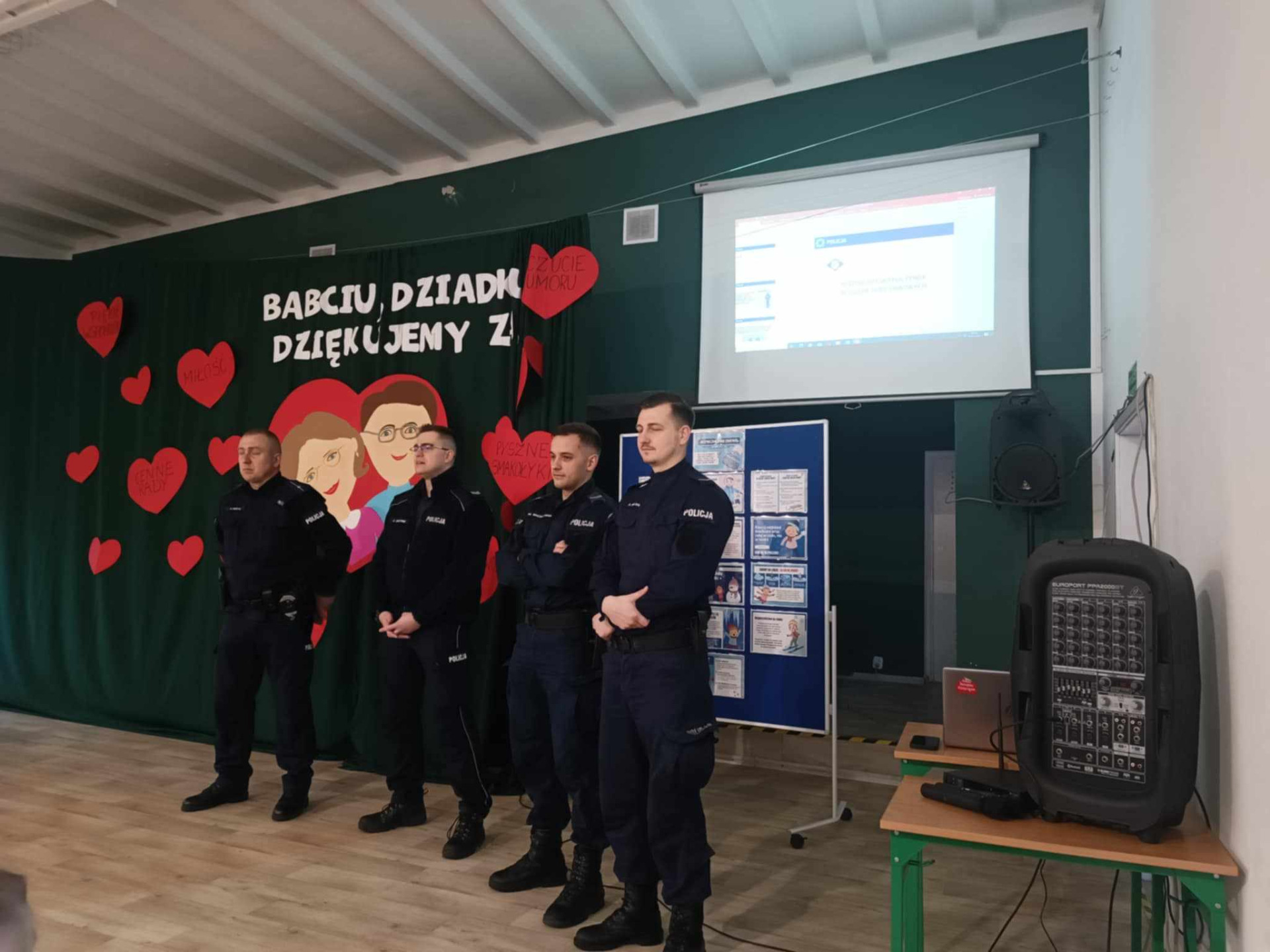 . Uświadamianie uczniom potrzeby zachowania rozsądku i zasad bezpieczeństwa podczas uprawiania zimowych sportów i organizowania zabaw na świeżym powietrzu, a także podczas poruszania się po drogach publicznych jest bardzo ważne. Dlatego wczoraj w szkole i przedszkolu odbyły się spotkania z policjantami z Komisariatu Policji w Pakości mł.asp. Krystianem Perdałem, st. sierż. Mateuszem Maciejewskim, sierż. Adrianem Balwierzem oraz st. sierż. Jakubem Skrzypkiem z Komisariatu Policji z Bydgoszcz – Fordon