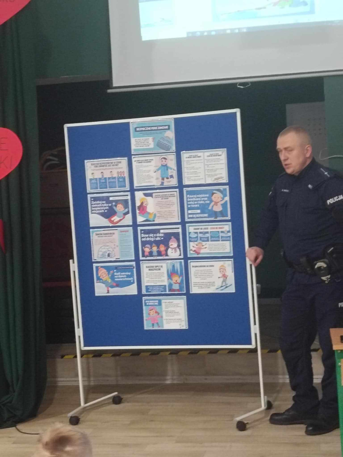 Funkcjonariusze przypominali podstawowe zasady poruszania się po drogach po zmroku używając elementów odblaskowych Omówili z dziećmi zasady bezpieczeństwa podczas zabaw na śniegu. Przestrzegali przed ślizganiem się na skutych lodem jeziorach, stawach i rzekach, organizowaniem kuligów dołączanych do samochodów , a także przed zjeżdżaniem z górek znajdujących się blisko ruchliwych ulic czy torowisk.