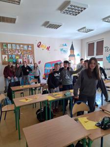 Przygotowaliśmy także własną zwrotkę hymnu projektu — wymyśliliśmy słowa, zaśpiewaliśmy i zamieściliśmy nagranie na naszej wspólnej platformie projektowej. Teraz z niecierpliwością czekamy na opinie od naszych partnerskich szkół!
