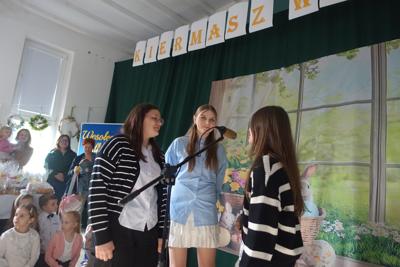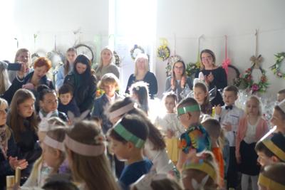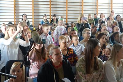 Jak co roku było kolorowo, wiosennie i świątecznie. Rodzice, przyjaciele, nasi absolwenci- nie zawiedli (tradycyjnie zabrakło miejsc siedzących