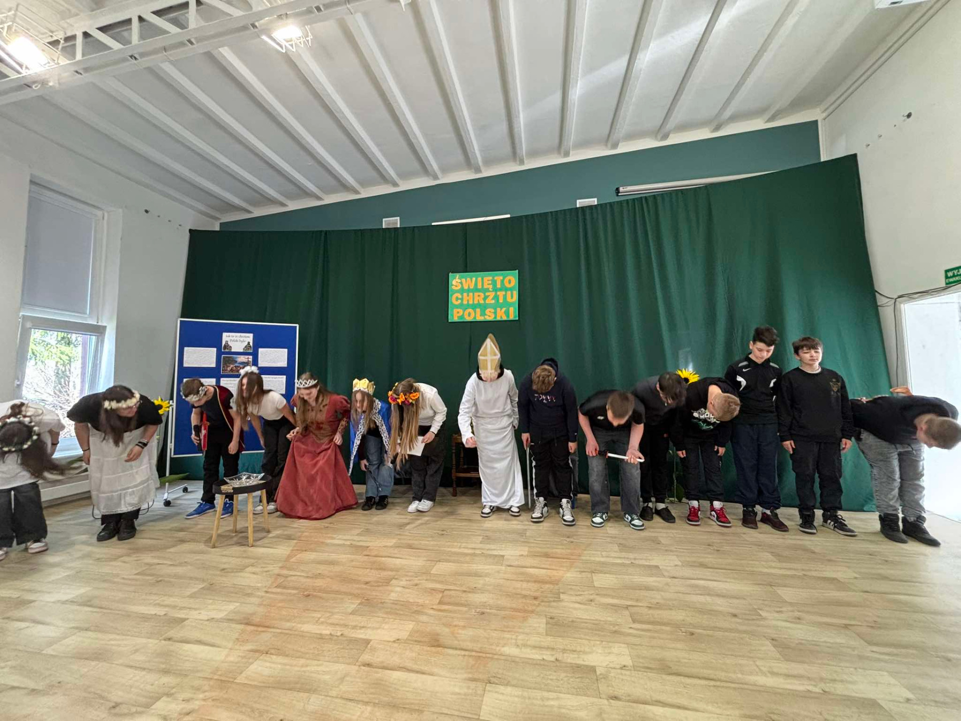 Z tej okazji cała społeczność szkolna wzięła udział w wyjątkowej, żywej lekcji historii pt. "Chrzest Polski - początki państwowości polskiej", przygotowanej przez klasę VI. Była to doskonała okazja, by przypomnieć sobie kluczowy moment w historii naszego narodu i jego wpływ na dalszy rozwój Polski.
