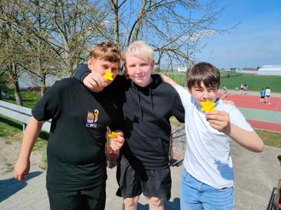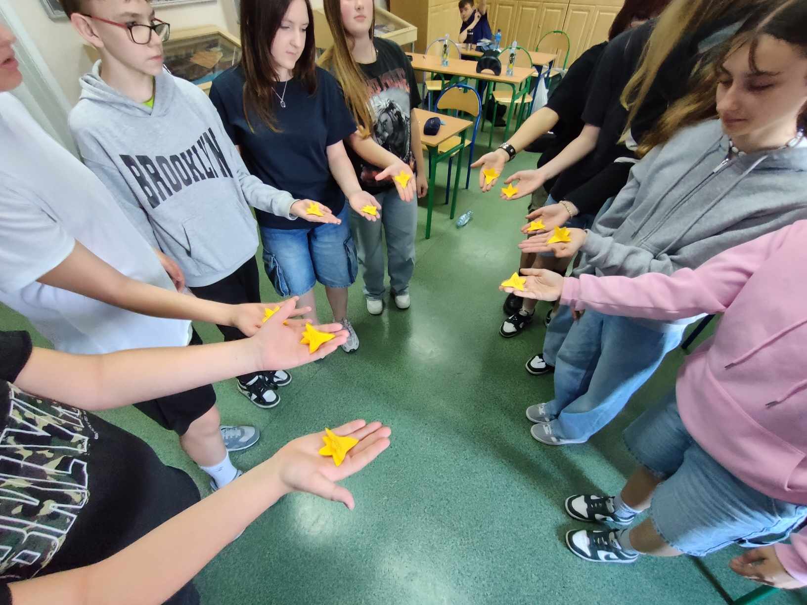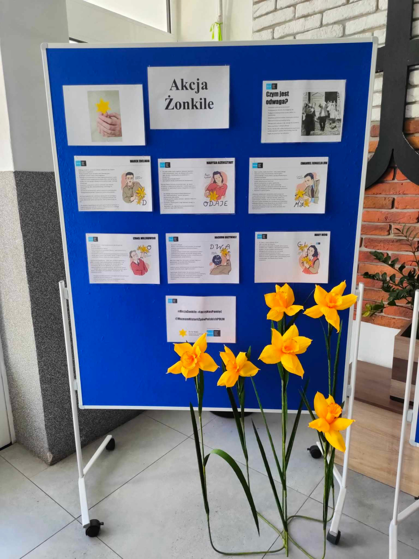 W ramach ogólnopolskiej Akcji Żonkile, upamiętniającej wybuch powstania w getcie warszawskim, nasi uczniowie z zaangażowaniem włączyli się w działania edukacyjne i symboliczne. Tworzyli papierowe żonkile – symbol pamięci, odwagi i solidarności – i rozdawali je w szkole oraz lokalnej społeczności.
