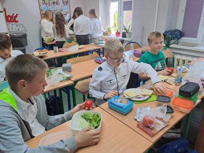 Europejski Dzień Śniadania wieńczył zajęcia z projektu edukacyjnego "Zdrowo i kolorowo" realizowane we współpracy z Państwową Powiatową Stacją Epidemiologiczną w Inowrocławiu.