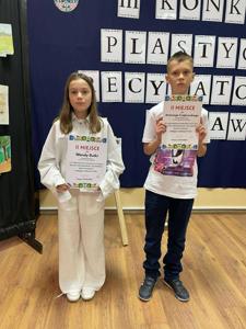 Wanda Dutka- za zajęcie II miejsca w kategorii wiekowej 7-10 lat oraz Antoni Czajkowski- za zajęcie II miejsca w kategorii uczniów starszych.