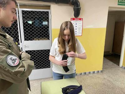 Wizyta ósmoklasistów na zajęciach z edukacji dla bezpieczeństwa w Zespole Szkół im. Jana Pawła II w Kościelcu