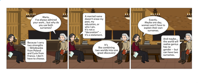 Szczególną dumą napełniał uczniów fakt, że mogli opowiedzieć kolegom z innych krajów o jednej z najsłynniejszych postaci w historii nauki — naszej Marii Skłodowskiej-Curie