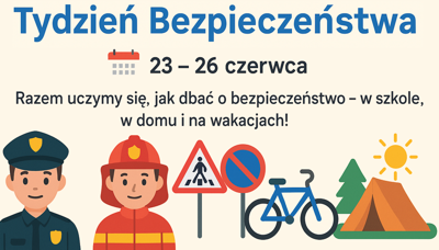 Od 23 do 26 czerwca 2025 r. w naszej szkole trwał Tydzień dla Bezpieczeństwa – ogólnopolska kampania informacyjno-edukacyjna przygotowana przez Ministerstwo Edukacji Narodowej we współpracy z Ministerstwem Spraw Wewnętrznych i Administracji, Ministerstwem Infrastruktury oraz NASK.