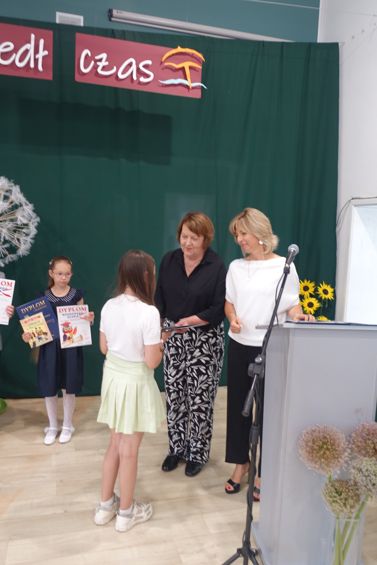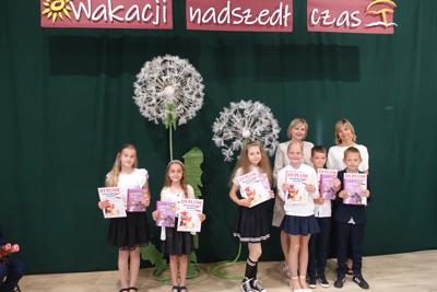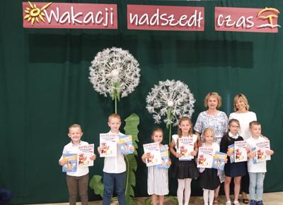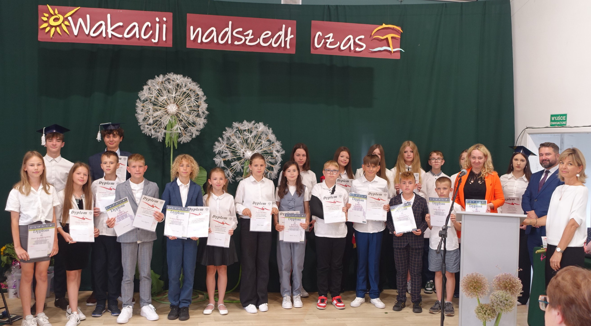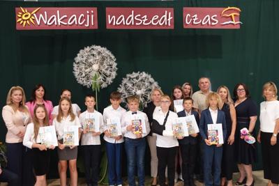 Swoją obecnością zaszczycił nas pan Radosław Siekierka- zastępca burmistrza Pakości. Ponadto grono pedagogiczne wraz z pracownikami administracji i obsługi na czele z p. dyrektor Dorotą Tulibacką, panie z Rady Rodziców, rodzice i dziatwa szkolna. O godzinie 8:00 swoje cenzurki wraz z nagrodami za wyniki w nauce i osiągnięcia sportowe odebrali uczniowie klas I-III. Następnie szczęśliwi oddalili się, by móc cieszyć się wakacyjnymi zabawami. Nieco później odbyła się uroczystość pożegnania absolwentów.