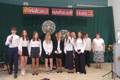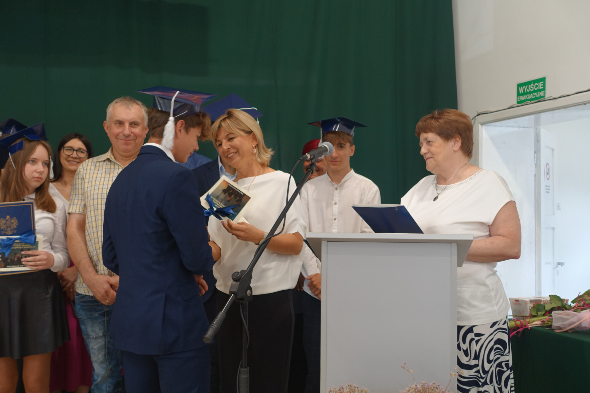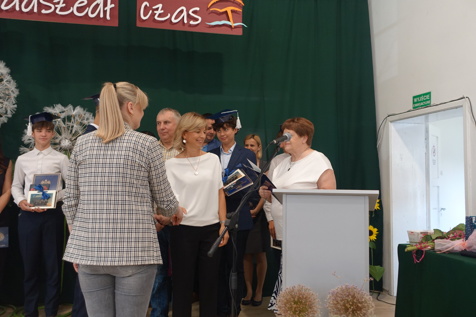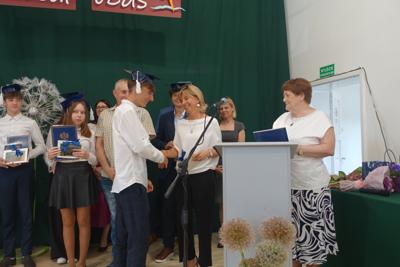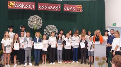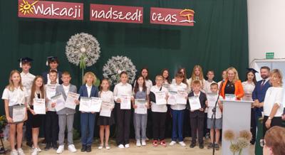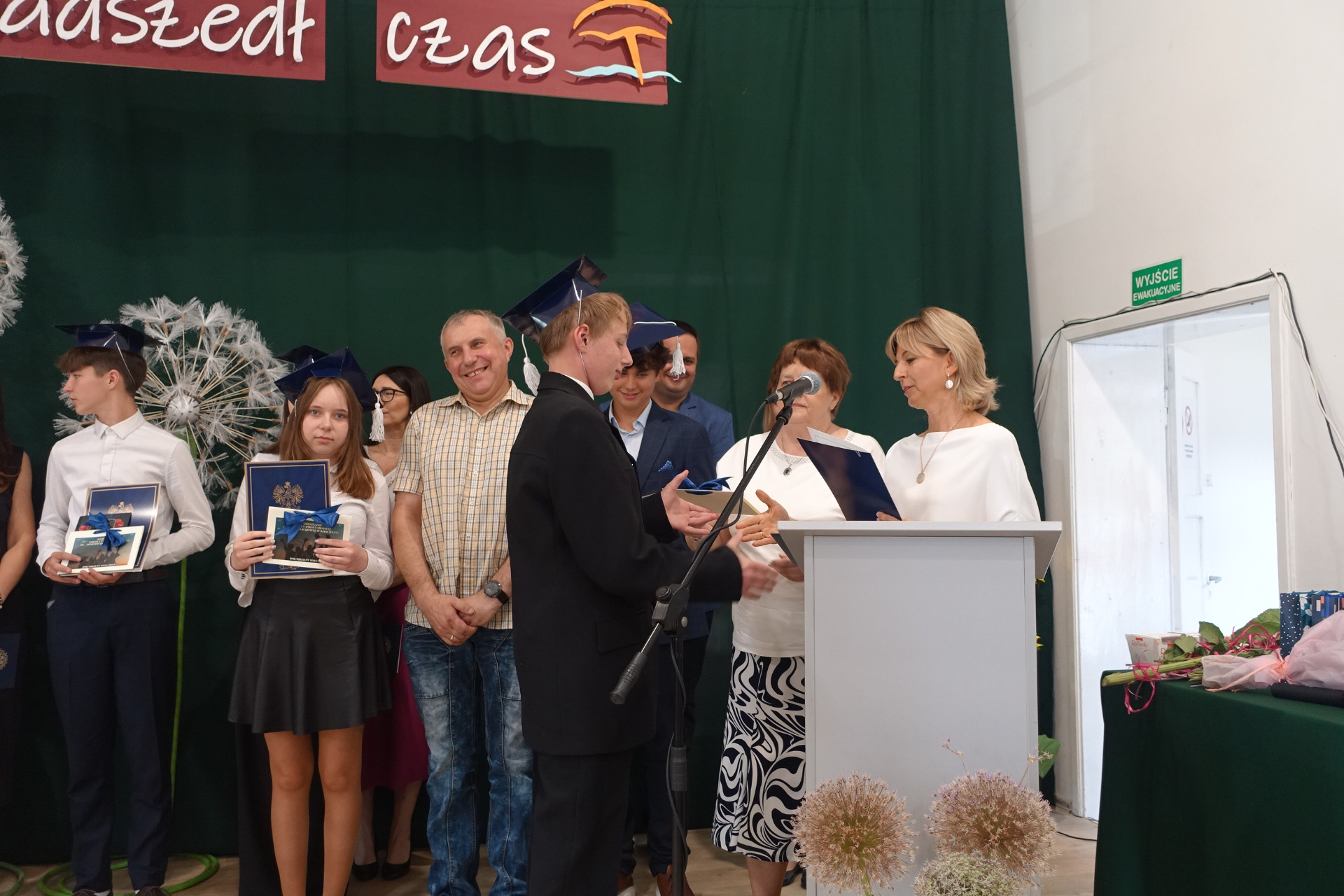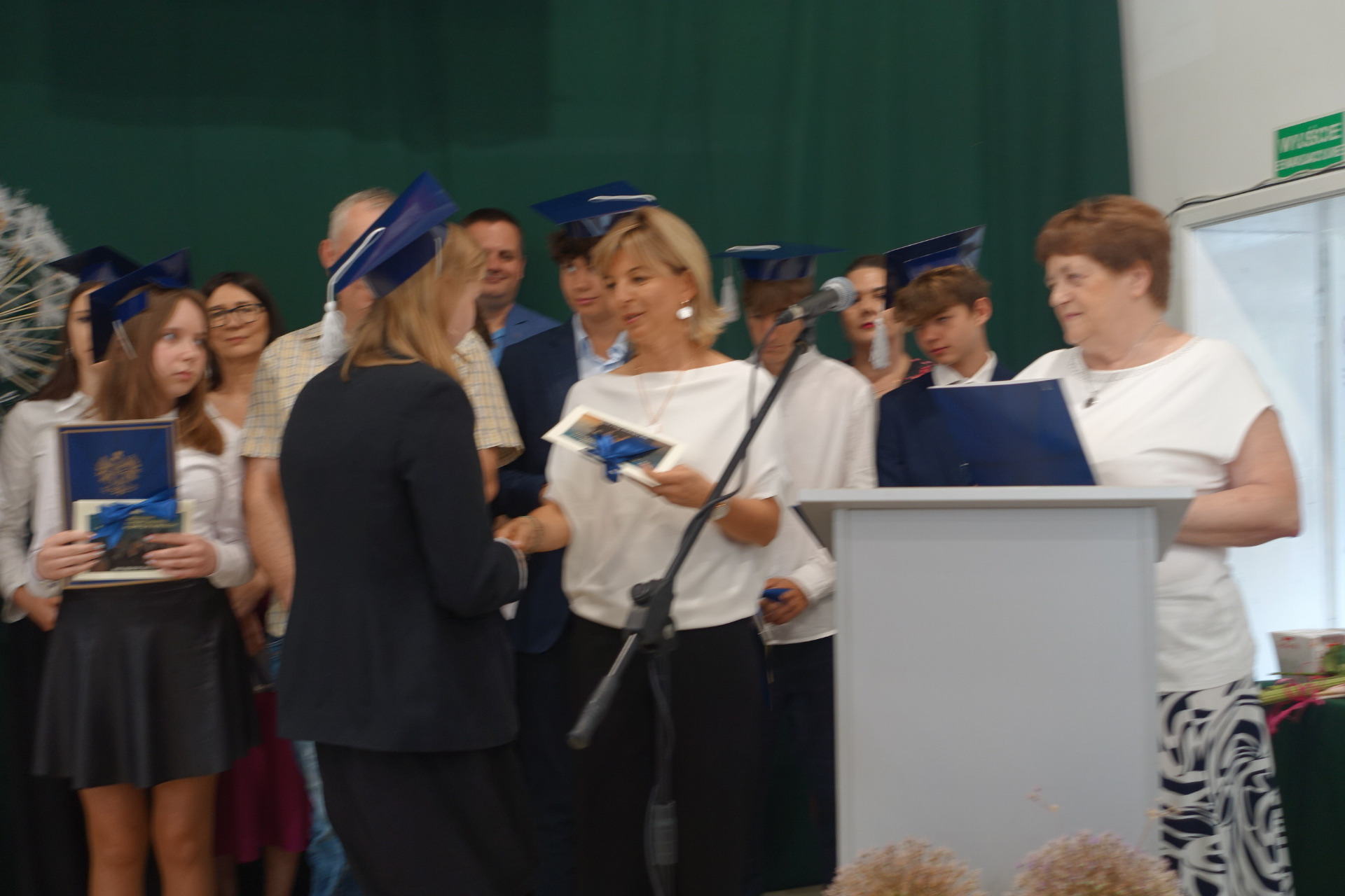 W swoim ostatnim wystąpieniu uczniowie byłej już klasy ósmej klasy dali wyraz swojej wdzięczności i podziękowania za całokształt pracy włożonej w nauczanie i kształtowanie odpowiednich postaw młodego człowieka. Było wesoło i smutno, trochę śmiechu i trochę łez. Uczniowie ze starszych klas osiągający najwyższe wyniki w nauce zostali nagrodzeni świadectwami z wyróżnieniem, a ich rodzice odebrali z rąk pani dyrektor Doroty Tulibackiej gratulacje i podziękowania. Pan Radosław Siekierka wręczył 26 uczniom stypendia za wyniki w nauce i osiągnięcia sportowe ufundowane przez organ prowadzący naszą szkołę- Gminę Pakość. Stypendia naukowe otrzymali: Hanna Bielska, Kornelia Bogusz, Oskar Kopytowski, Roksana Sulikowska, Wojciech Bogusz, Antoni Czajkowski,Piotr Kalczyński, Łukasz Niezbecki, Liliana Sikorska, Lena Sikorska, Kalina Tomaszewska, Agata Wesołowska, Paweł Kalczyński, Liliana Łukowska, Lena Wodzińska, Maciej Bielski, Julia Stiller, Jan Wiliński. Stypendia sportowe trafiły do Oskara Kopytowskiego, Miłosza Skowrońskiego, Roksany Sulikowskiej, Antoniego Zaremby, Wojciecha Bogusza, Łukasza Niezbeckiego, Zuzanny Stępniewskiej i Szymona Sulikowskiego. Nagrodę Burmistrza Pakości za najwyższe noty w nauce otrzymali uczniowie kl. VIII: Julia Stiller i Maciej Bielski. Niezwykle miłą niespodzianką okazała się nagroda specjalna ufundowana przez Radę Rodziców dla ucznia klasy VIII Nikodema Sobieralskiego za codzienną szkolną postawę pełną życzliwości i uśmiechu, za chęć niesienia pomocy młodszym, rówieśnikom i nauczycielom. A to dziś niezwykle cenne cechy.