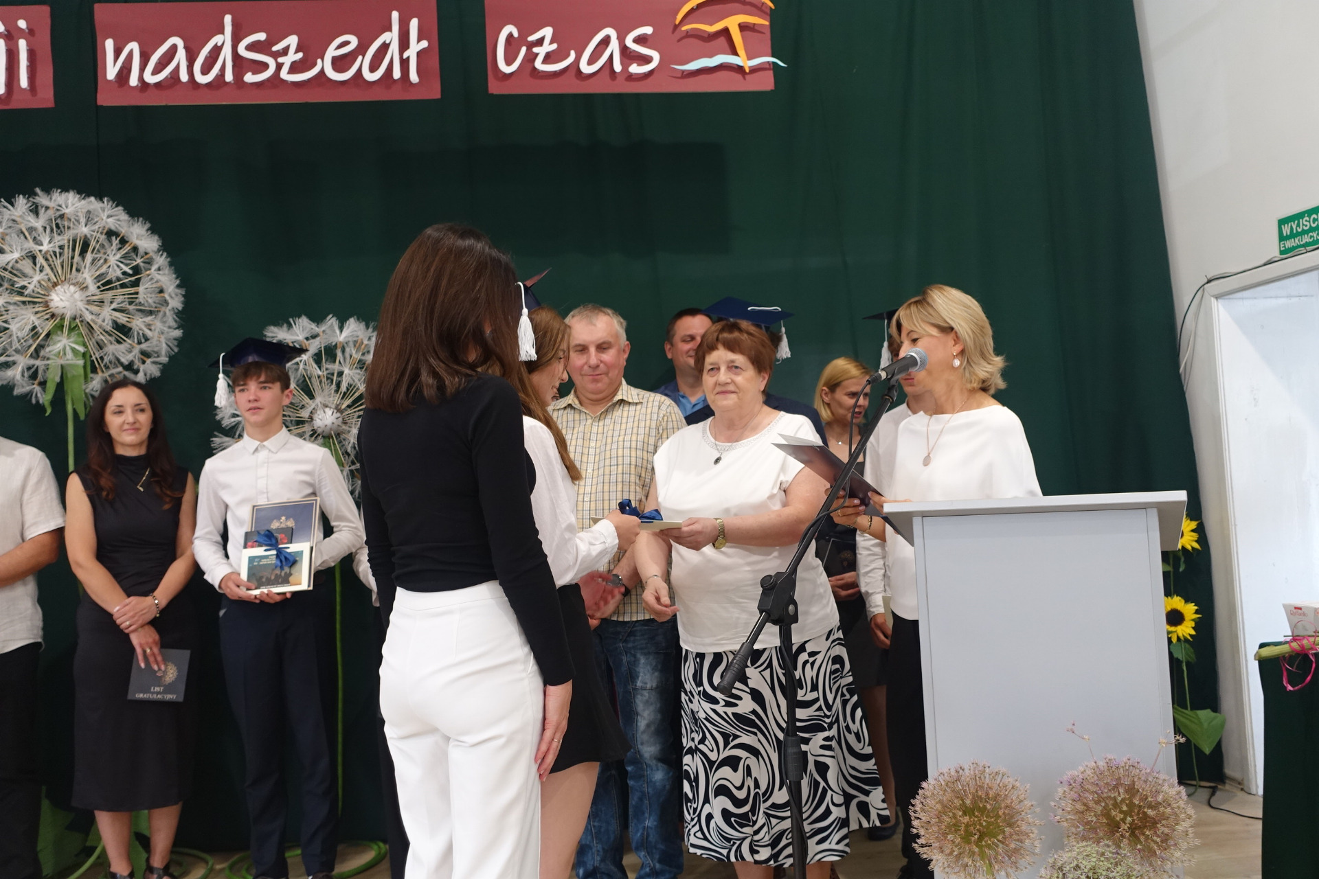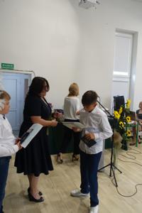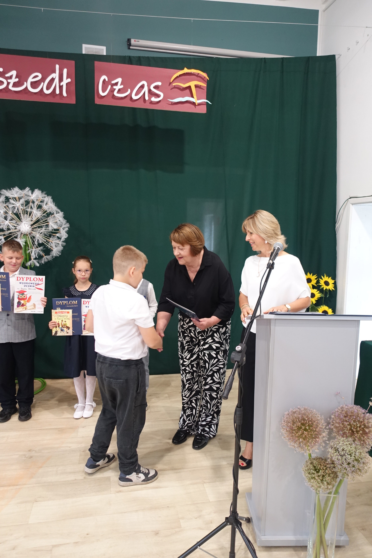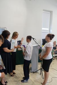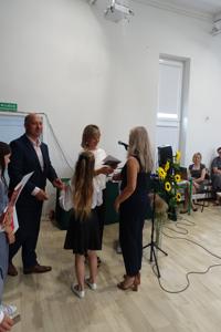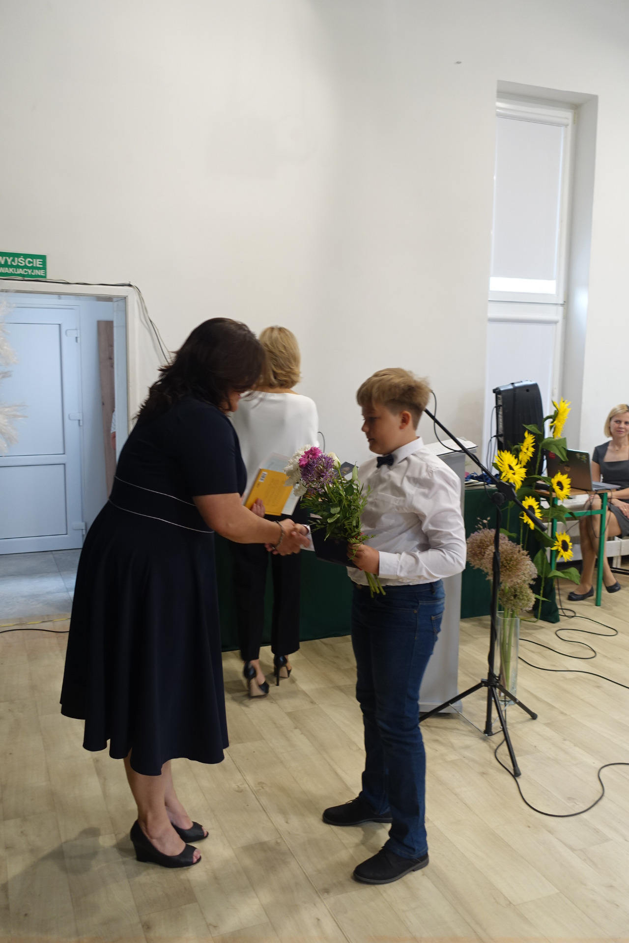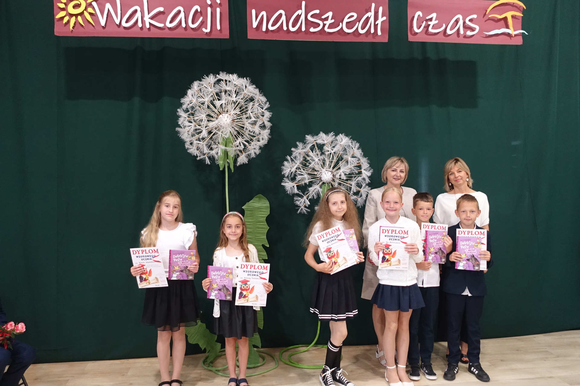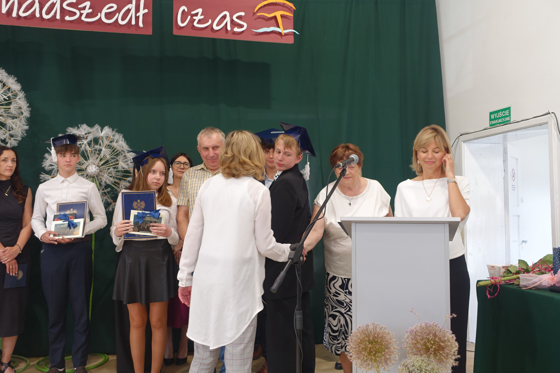 W swoim ostatnim wystąpieniu uczniowie byłej już klasy ósmej klasy dali wyraz swojej wdzięczności i podziękowania za całokształt pracy włożonej w nauczanie i kształtowanie odpowiednich postaw młodego człowieka. Było wesoło i smutno, trochę śmiechu i trochę łez. Uczniowie ze starszych klas osiągający najwyższe wyniki w nauce zostali nagrodzeni świadectwami z wyróżnieniem, a ich rodzice odebrali z rąk pani dyrektor Doroty Tulibackiej gratulacje i podziękowania. Pan Radosław Siekierka wręczył 26 uczniom stypendia za wyniki w nauce i osiągnięcia sportowe ufundowane przez organ prowadzący naszą szkołę- Gminę Pakość. Stypendia naukowe otrzymali: Hanna Bielska, Kornelia Bogusz, Oskar Kopytowski, Roksana Sulikowska, Wojciech Bogusz, Antoni Czajkowski,Piotr Kalczyński, Łukasz Niezbecki, Liliana Sikorska, Lena Sikorska, Kalina Tomaszewska, Agata Wesołowska, Paweł Kalczyński, Liliana Łukowska, Lena Wodzińska, Maciej Bielski, Julia Stiller, Jan Wiliński. Stypendia sportowe trafiły do Oskara Kopytowskiego, Miłosza Skowrońskiego, Roksany Sulikowskiej, Antoniego Zaremby, Wojciecha Bogusza, Łukasza Niezbeckiego, Zuzanny Stępniewskiej i Szymona Sulikowskiego. Nagrodę Burmistrza Pakości za najwyższe noty w nauce otrzymali uczniowie kl. VIII: Julia Stiller i Maciej Bielski. Niezwykle miłą niespodzianką okazała się nagroda specjalna ufundowana przez Radę Rodziców dla ucznia klasy VIII Nikodema Sobieralskiego za codzienną szkolną postawę pełną życzliwości i uśmiechu, za chęć niesienia pomocy młodszym, rówieśnikom i nauczycielom. A to dziś niezwykle cenne cechy.